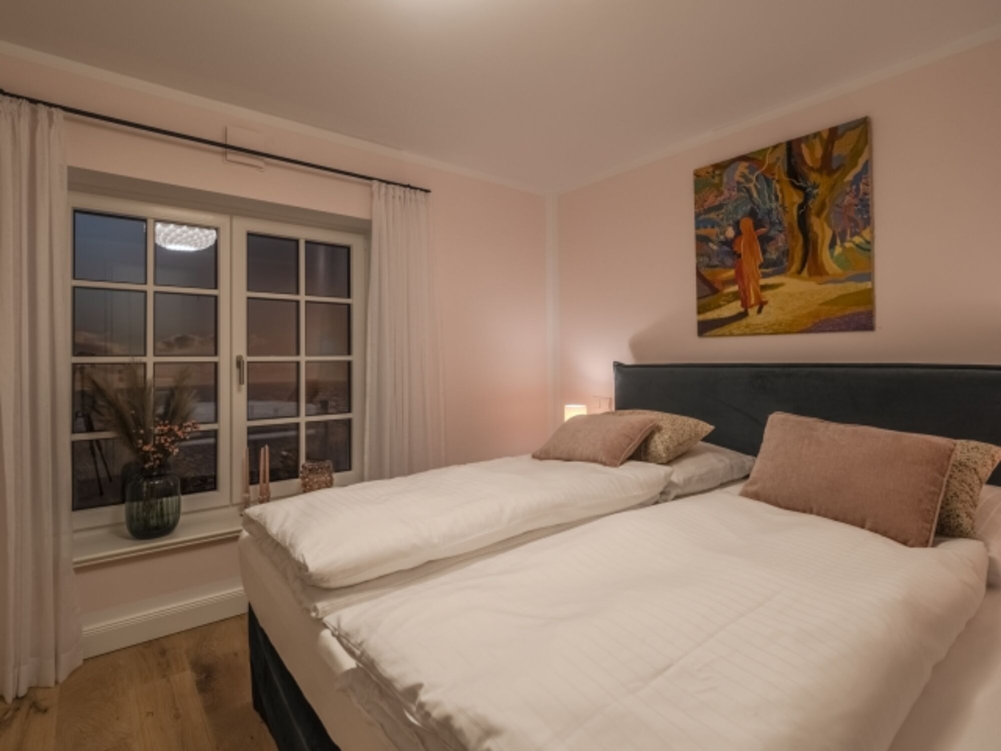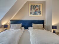 Wunderschönes Schlafzimmer in der ersten Etage des Hause. Wunderschön eingerichtet, bqueme, große Boxspringbetten und Tischerlereinbauten. Wandhängender TV Boxspringbett