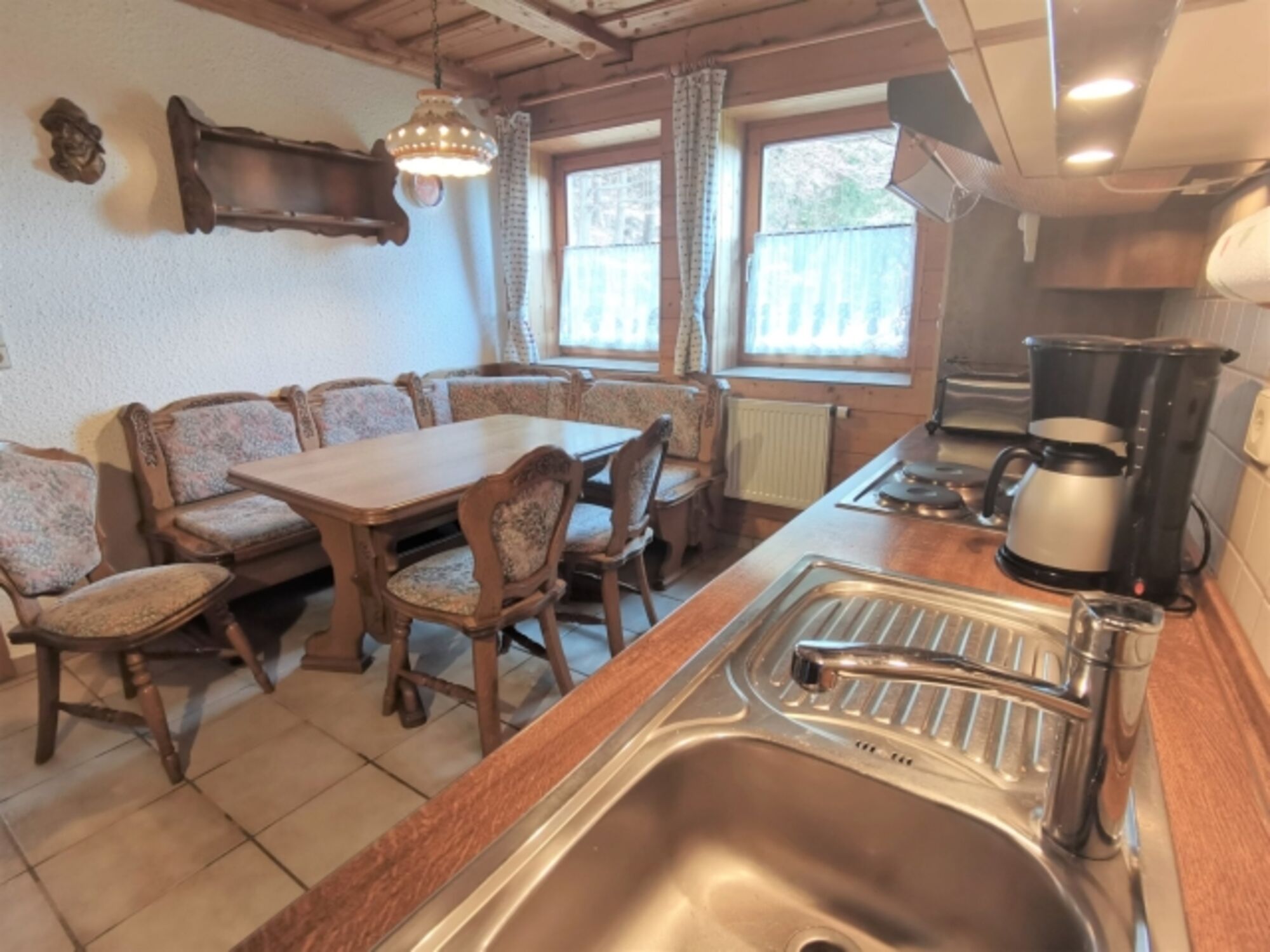 Im Erdgeschoss befindet sich eine Wohnküche mit Essbereich, eine Garderobe, eine Abstellkammer, ein Gäste-WC, sowie der urige Wohnbereich. Vom Wohnbereich gelangen Sie auf die Terrasse (Zaun 70-80 cm) mit herrlicher Aussicht über Wiesen und Bergwälder in das „Brandtner Tal“.