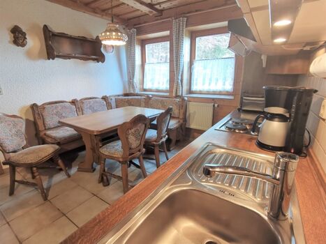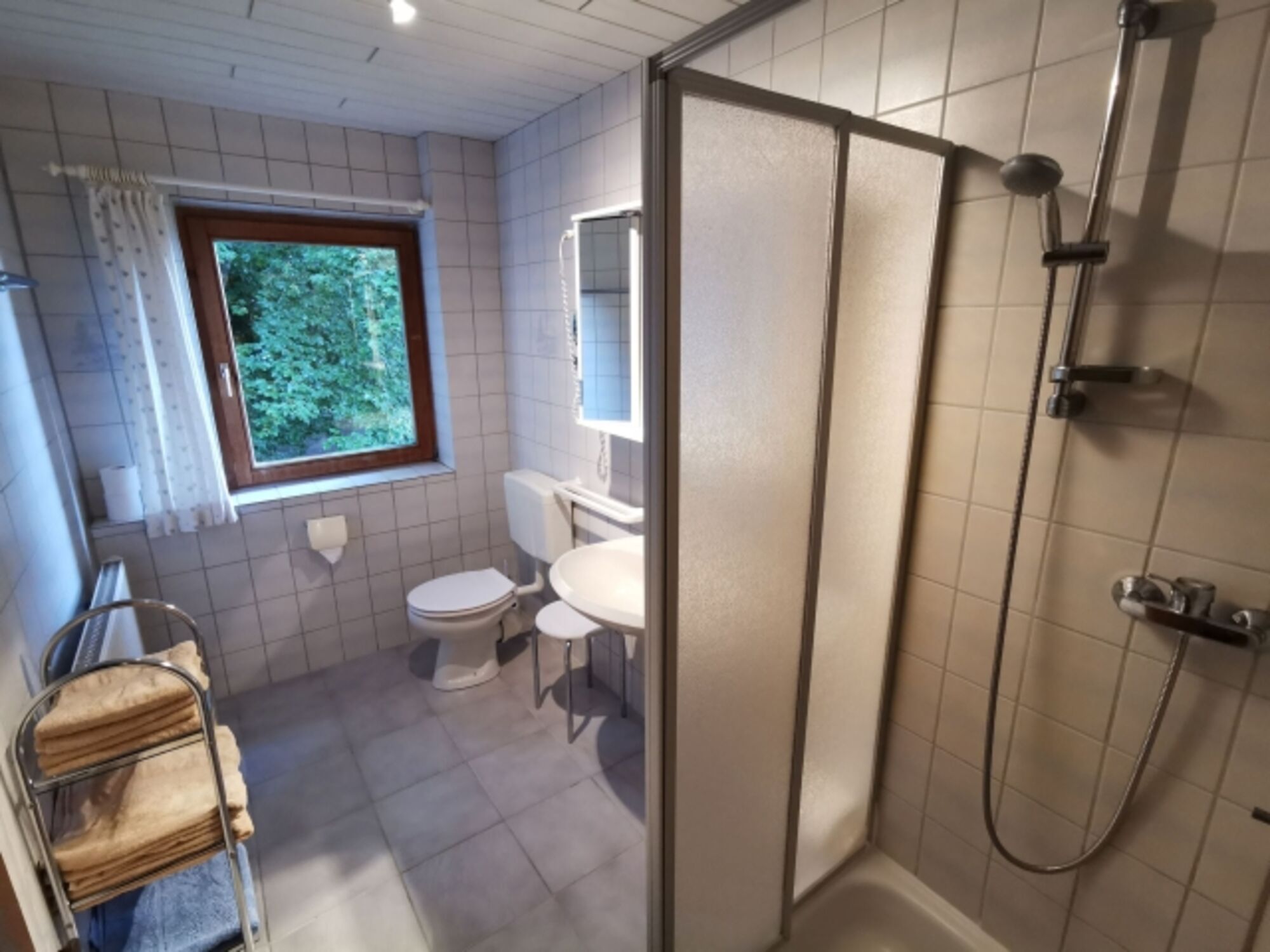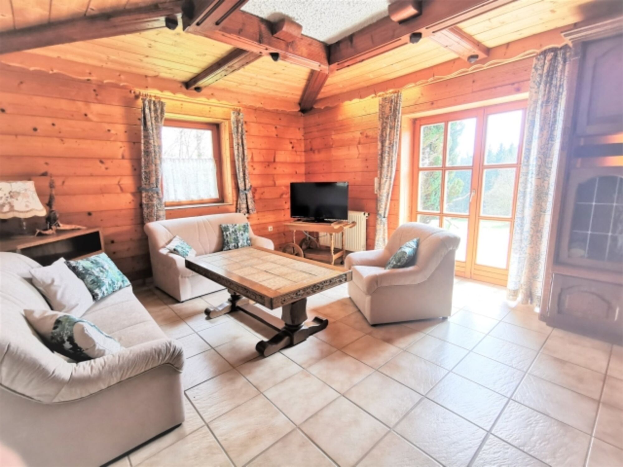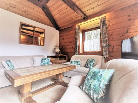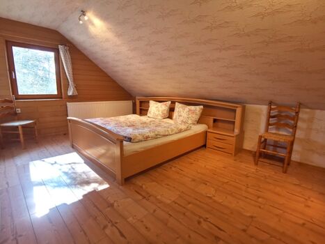 Das Ferienhaus "Tannenwäldchen" (Doppelhaushälfte) liegt direkt am Waldrand und ist urig und gemütlich im typischen bayerischen Stil eingerichtet. Im Obergeschoss sind zwei getrennte Schlafzimmer (mit Fliegengittern) und ein Badezimmer.