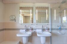 Doppelwaschbecken, Spiegel, Fenster im Bad