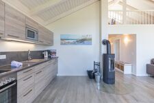 Das 85 qm große Ferienhaus ist modern und exklusiv im skandinavischen Charme eingerichtet. Die zwei Schlafzimmer mit jeweils einen Komfort-Doppelbett (180 x 200 cm) bieten Platz für bis zu vier Personen. Das gemütliche Wohnzimmer ist mit SAT-TV und einem Blu-Ray-DVD-Player ausgestattet. Der Kaminofen sorgt auch in der kälteren Jahreszeit für behagliche Stunden. Die offene Küche bietet Ihnen eine exklusive und umfangreiche Ausstattung, die das Herz eines jeden Hobbykochs höher schlagen lässt: Ceranfeld mit 4 Kochplatten, Backofen, Kühlschrank mit ***Gefrierfach, Mikrowelle, Geschirrspüler, Filterkaffeemaschine uvm. Das Badezimmer lässt keine Wünsche offen: zwei Waschbecken, eine große Badewanne, eine ebenerdige Dusche und eine schöne Sauna geben Ihrem Urlaub den richtigen Rahmen. Das Ferienhaus verfügt über ein zusätzliches WC. Auf der überdachten Terrasse können Sie auf bequemen Gartenstühlen und -liegen die Sonne genießen.