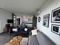 In den 70m² des Ferienchalets erwartet Sie ein modernes Tageslichtbad mit einer erfrischenden Rainshower-Dusche, begehbar von beiden Schlafzimmern. Auf dem Flur befindet sich die separate Toilette. Der helle Wohnbereich ist ausgestattet mit einem Esstisch, Stühlen, einem gemütlichen Sofa, einem schwenkbaren TV, einem Elektro-Kamin, zwei bequemen Sesseln und einem gemütlichen Relax-Sessel. Smart-TV und Highspeed-Internet stehen ebenfalls zur Verfügung. Die voll ausgestattete Küche ist nahtlos in den Wohnbereich integriert.