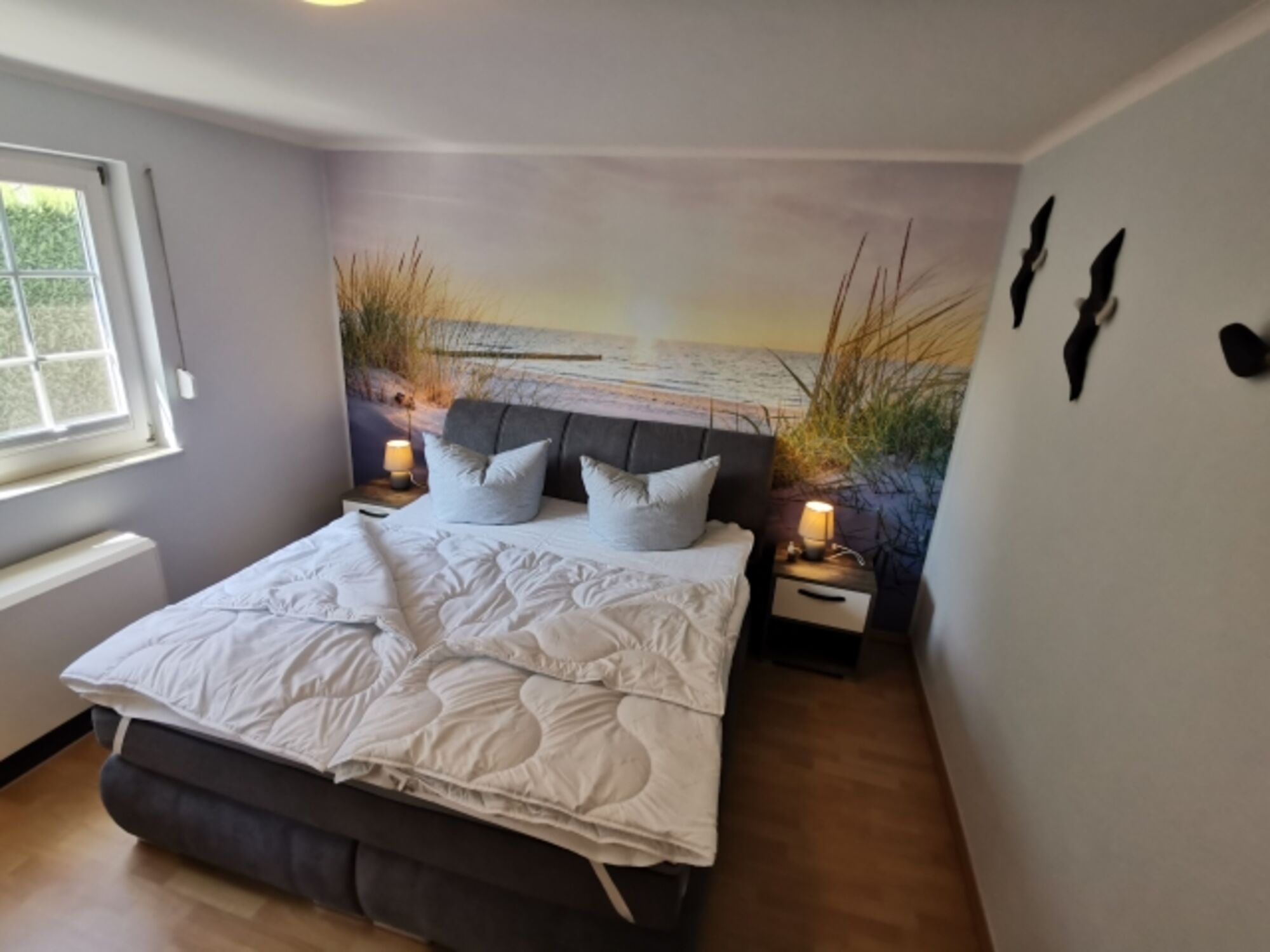 Nur ca. 250 m vom Strand entfernt und 7 Minuten zur Fußgängerzone - ideal gelegen. Zum Hundestrand sind es nur 850m - 15 Minuten gemütlich zu Fuß. Auf Sie wartet eine moderne und gemütliche Ausstattung - Erholung garantiert. Das Haus hat 2 Schlafzimmer (1 Schlafzimmer mit Doppelbett, 1 Zimmer mit zwei Einzelbetten) mit Verdunklungsrollo, ein schönes Bad mit Dusche, großzügige Terrasse mit Süd-West Ausrichtung. Für den Transport zum Strand steht ein Bollerwagen bereit und für die Autos stehen Ihnen zwei Stellplätze zur Verfügung.