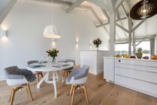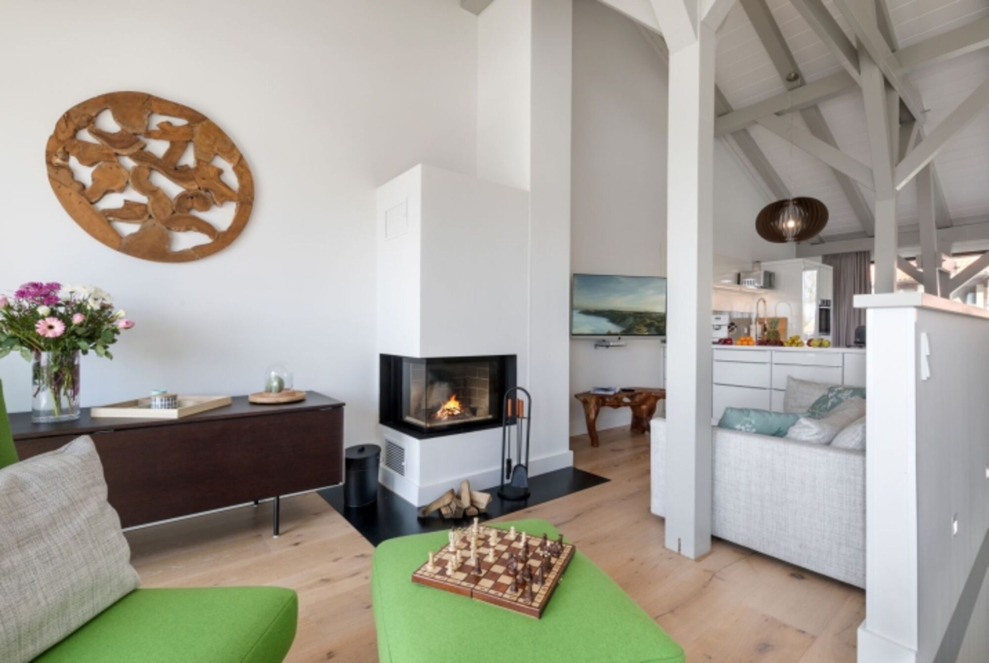 Das Ferienhaus ist 110 Quadratmeter groß und erstrecken sich über zwei Etagen. So ist nicht nur reichlich Privatsphäre auf Rügen garantiert, es überzeugen auch die „inneren Werte“ auf der ganzen Linie: Angefangen von der exklusiven Sea Lounge, zwei Schlafzimmern und Bädern mit bodentiefen Duschen bis hin zu einer Sauna und einem Kamin. Dadurch bekommt der Aufenthalt auf Ummanz zu jeder Jahreszeit seinen Reiz. Im Sommer genießt man die sanfte Brise, im Winter macht man es sich abends kuschelig und gemütlich.