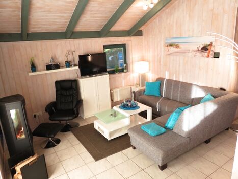 TV-Sat, HDTV Flachbildschirm, Blu-Ray-Player, Kaminofen, 3er-Sofa, Sessel