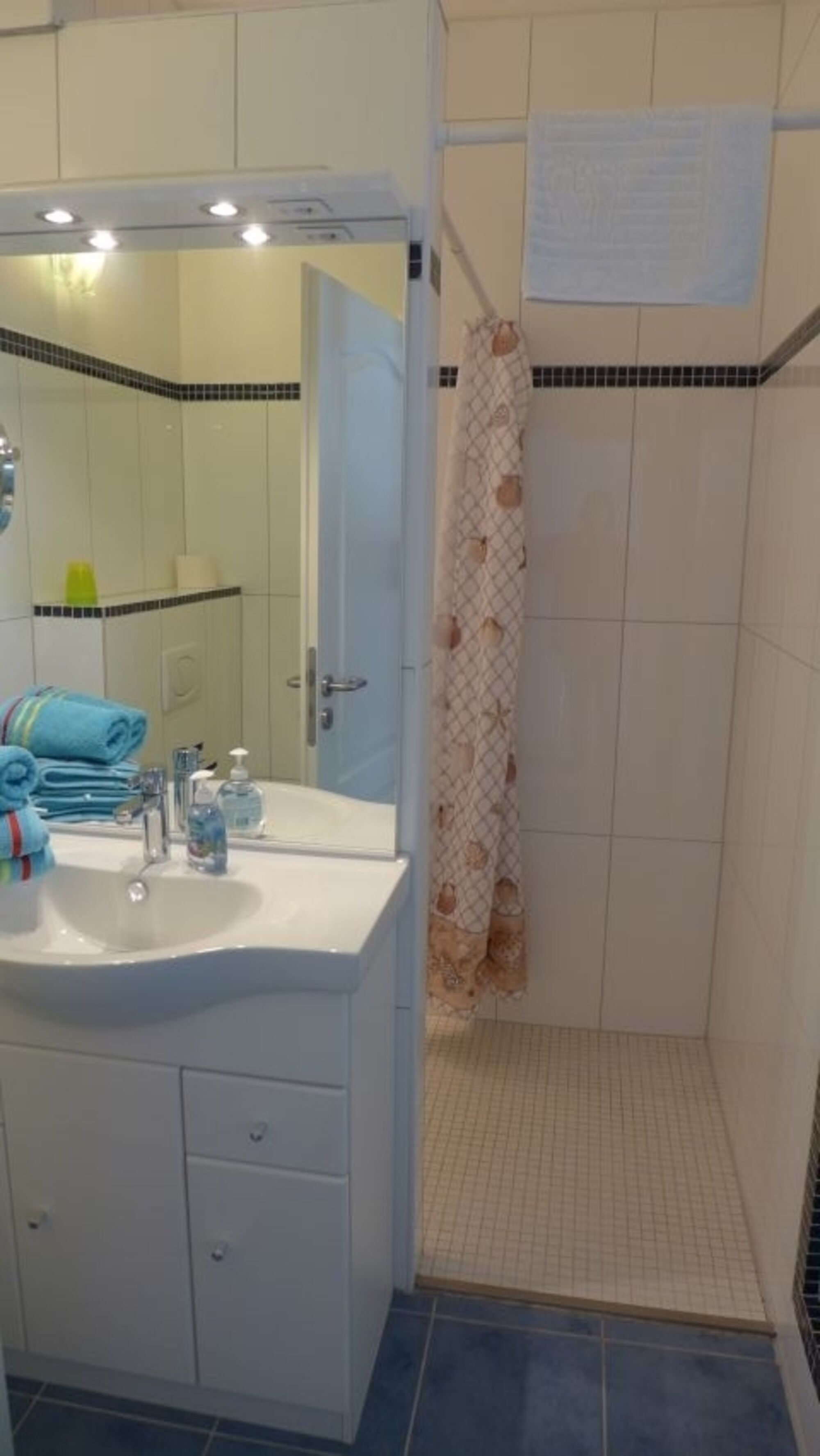 große Dusche ebenerdig Massagedusche, Spiegel
