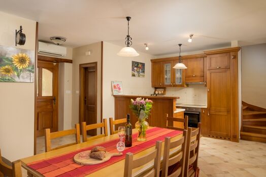 Es befindet sich im Dorf Kučići, in der Nähe von Tinjan im Herzen Istriens, umgeben von viel Grün und bietet eine ruhige Umgebung zur Entspannung.