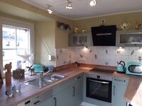 die offene, helle Küche incl. Herd, Backofen, Geschirrspüler, Kühl-Gefrierkombination, ausreichend Geschirr/ Besteck, Mikrowelle und gleich anschließend das Esszimmer mit Kaminofen sowie ein großes Doppelschlafzimmer (1,80m x2,00m) mit bequemen Matratzen, Topper und ein Dusch- Bad en suite.
