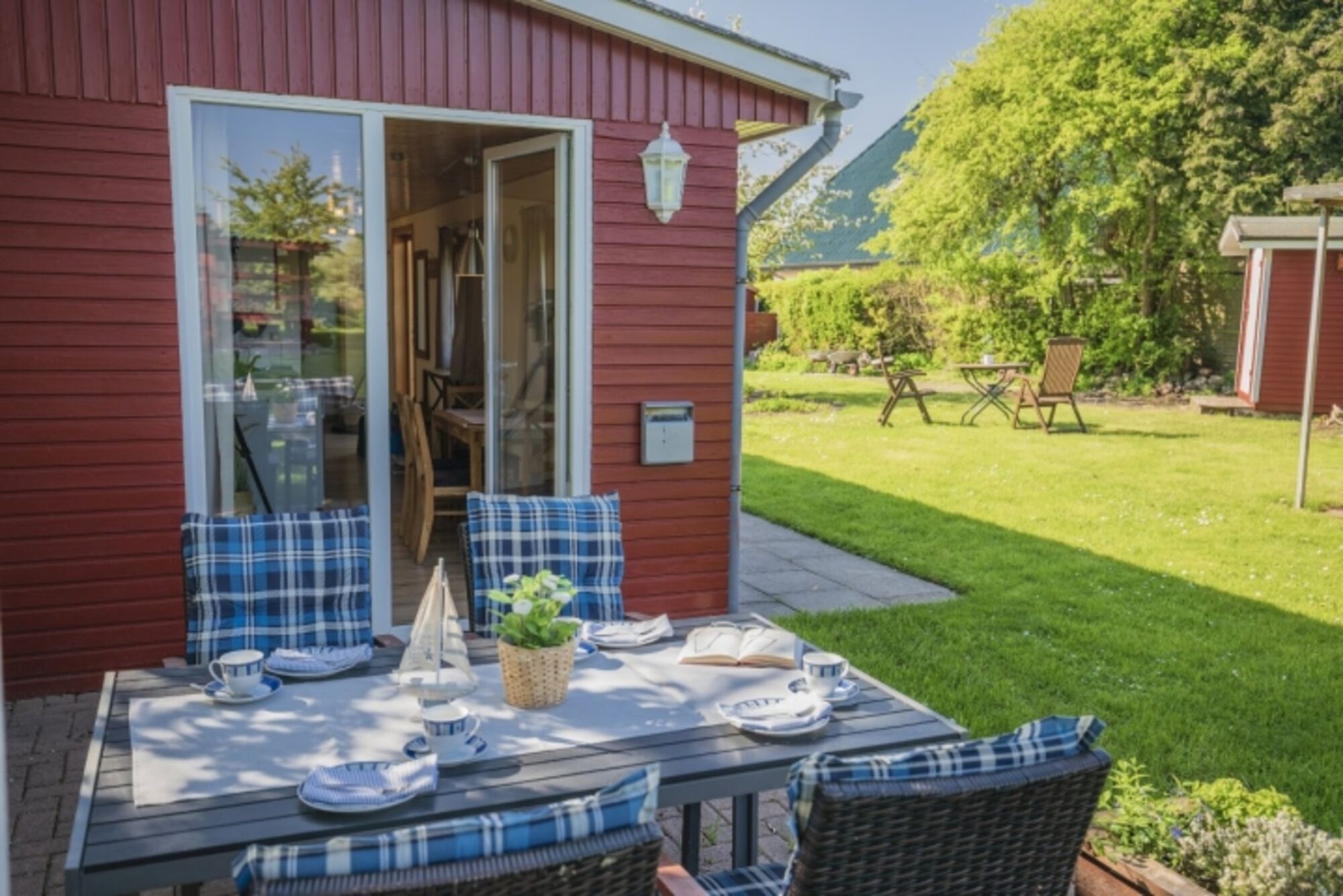 Ferienwohnung 05 mit eingezäuntem Garten und Blick auf den Yachthafen