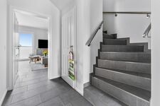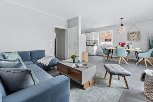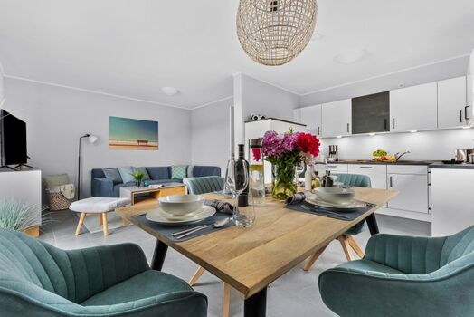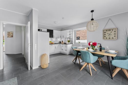 Die elegante Doppelhaushälfte "Lee" bietet ein hochwertiges und modernes Ambiente, das Ihren Aufenthalt an der Nordsee zu einem unvergesslichen Erlebnis machen wird! Besonders hervorzuheben ist die nachhaltige Bauweise des Hauses. Es entspricht nicht nur dem Standard von KfW 40 plus, sondern bezieht seinen Strom vollständig aus erneuerbaren Energiequellen. Zusätzlich wurde eine Erdwärmepumpe installiert. Der großzügige Wohnbereich ist stilvoll eingerichtet und mit einem Flatscreen-TV ausgestattet. Die separate, moderne Küche bietet alles, was Sie für einen gelungenen Kochabend benötigen. In den beiden Schlafzimmern befinden sich jeweils ein großes Doppelbett sowie ein Flatscreen-TV. Die beiden modernen Bäder verfügen jeweils über eine ebenerdige Dusche. Zum Haus gehören zudem eine Terrasse, ein großer, komplett eingezäunter Garten und ein Gemeinschaftsgeräteschuppen. Vor dem Haus steht Ihnen ein großzügiger Parkplatz zur Verfügung. Es gibt zusätzlich einen Carport: Elektrofahrzeuge können im Carport über eine 11 kW Kraftsteckdose aufgeladen werden.