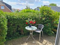 Die Terrasse, die sich direkt vor dem Wohnzimmer befindet, ist nach Südwesten ausgerichtet. Hier können Sie abends gemütlich die letzten Sonnenstrahlen genießen. Zudem gibt es einen kleinen, umzäunten Vorgarten.
