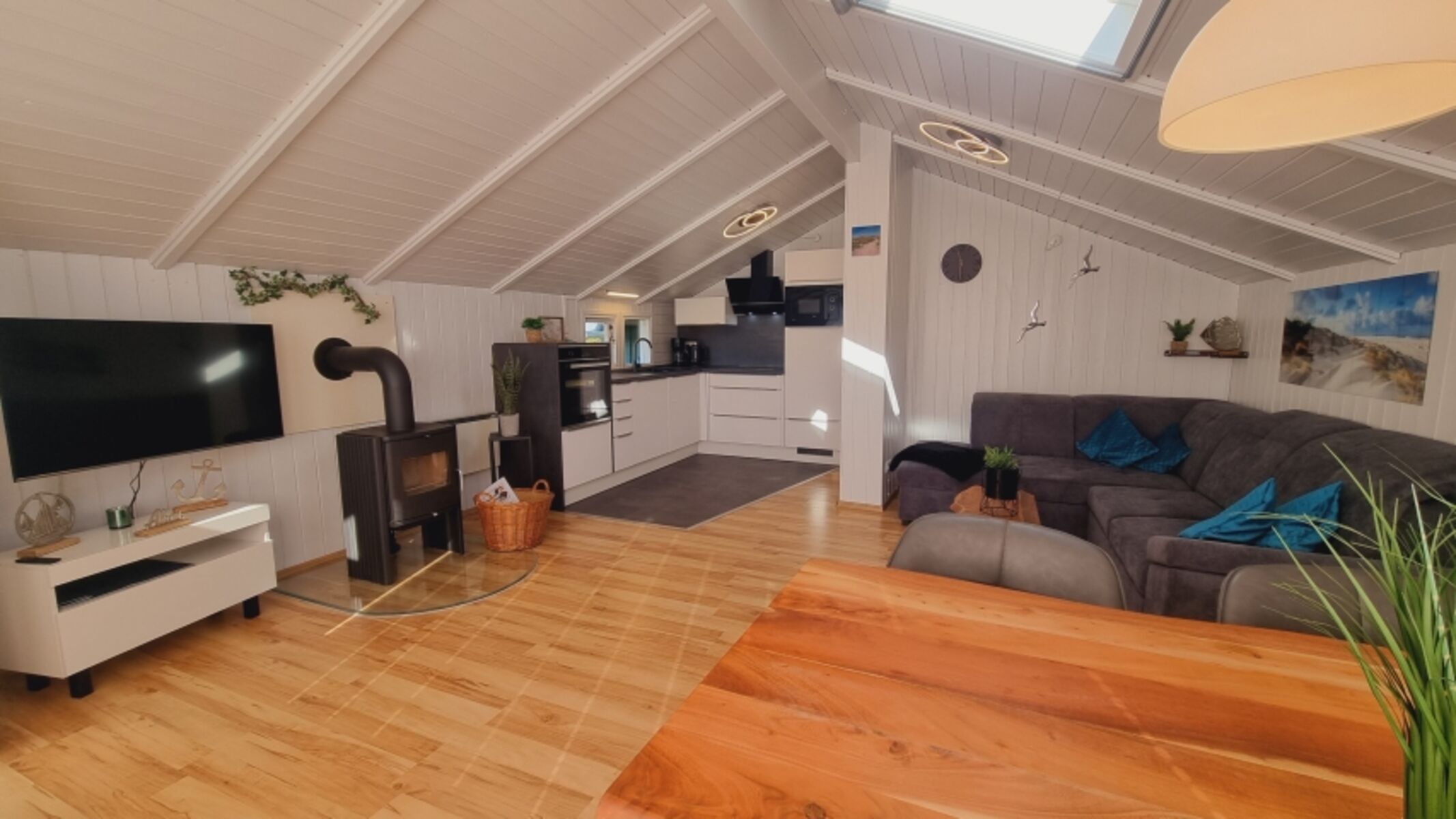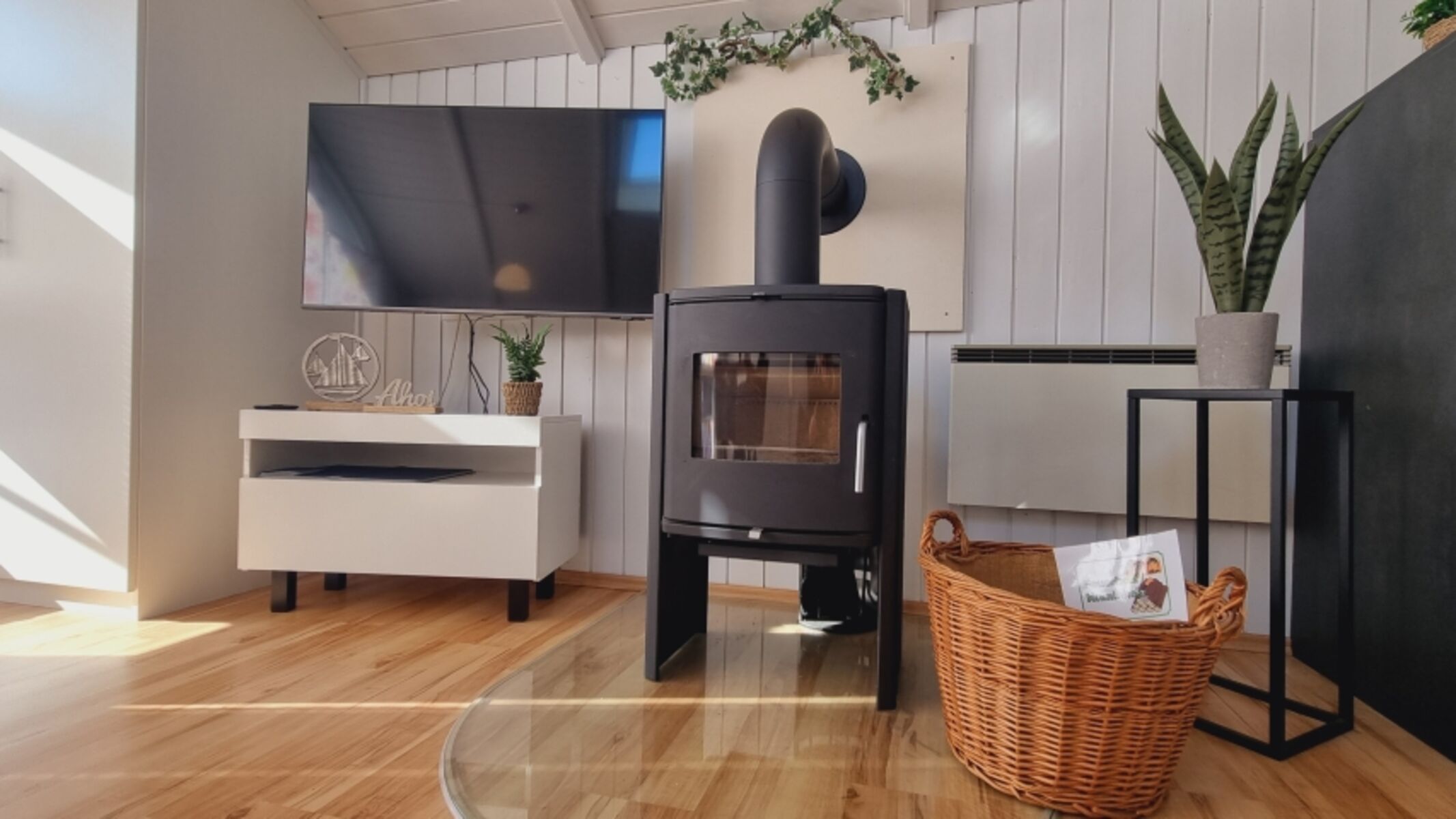 TV-Sat, HDTV Flachbildschirm, CD-Player, Kaminofen, 2er-Sofa, Sessel