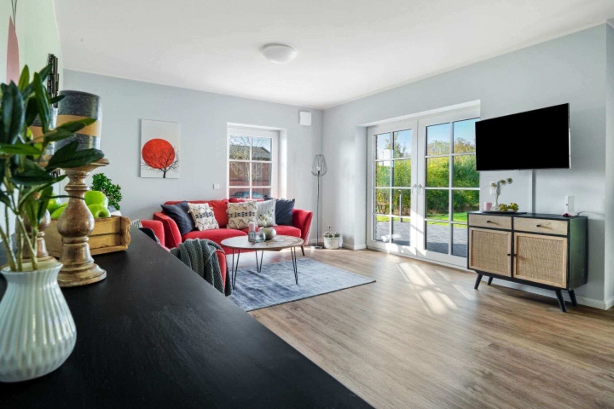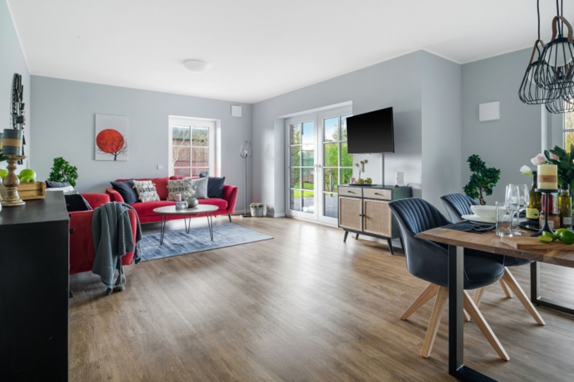 Genießen Sie Ihren Traumurlaub in unserer komfortablen Erdgeschoss Ferienwohnung "Abendrot" mit Süd/West Terrasse in Osterhever, direkt am Vogelschutzgebiet, an der Nordsee. Die stilvoll eingerichtete Unterkunft kombiniert modernen Komfort mit einem einladenden Ambiente.
