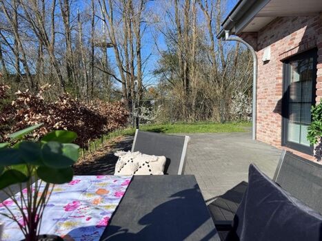 Entspannen Sie auf der Süd/West Terrasse mit Blick in den Garten erkunden Sie die malerischen Strandabschnitte in der Nähe.