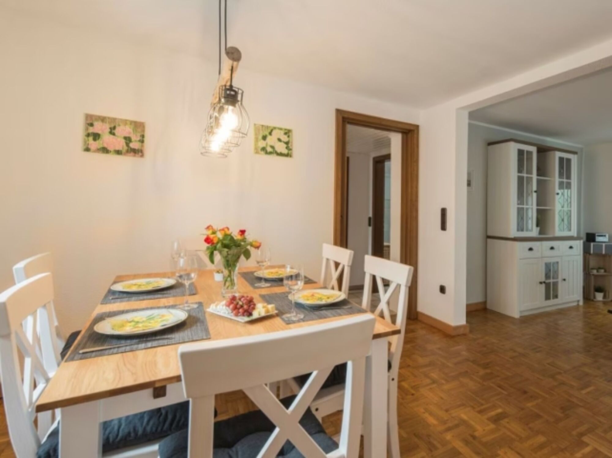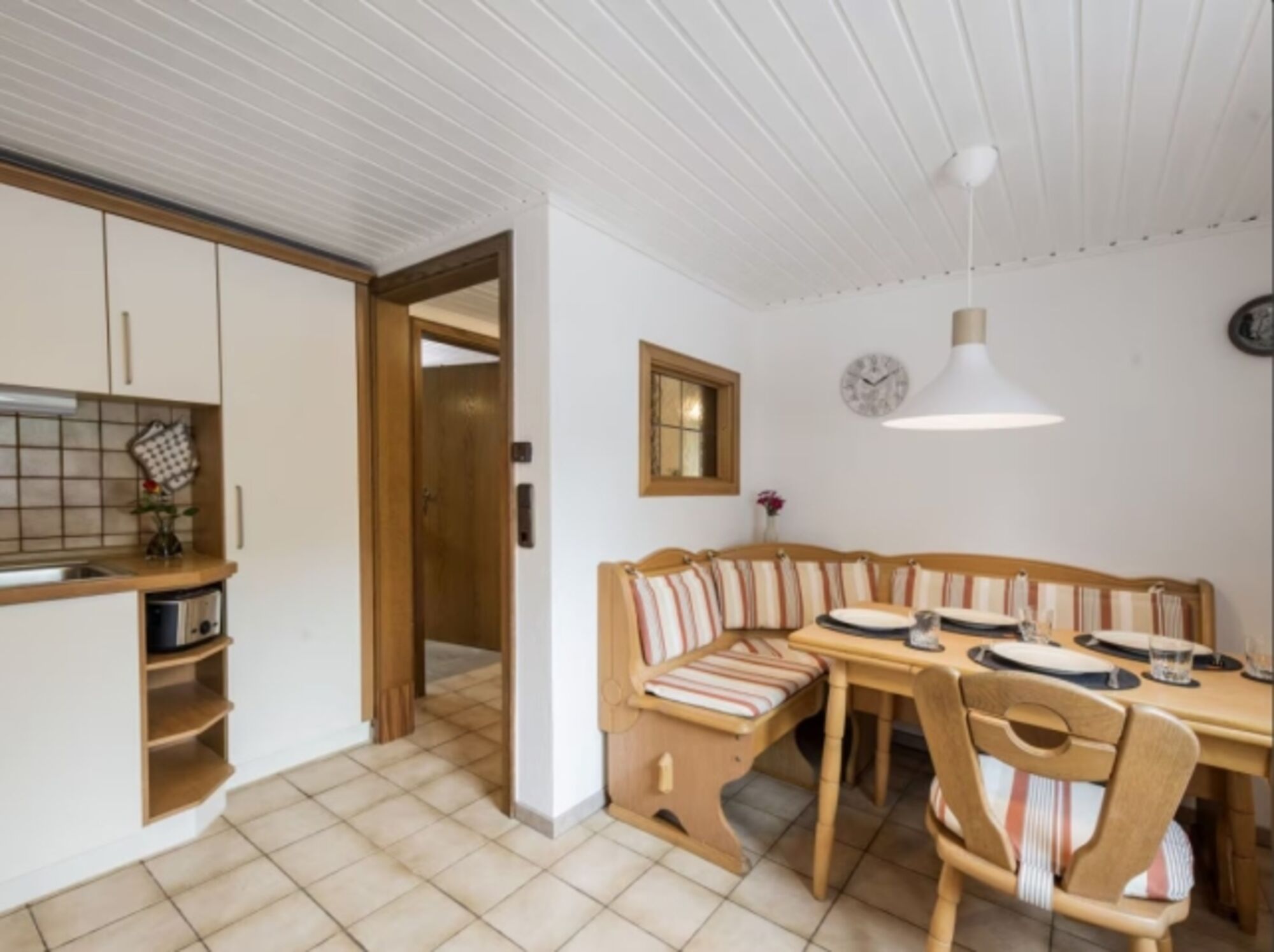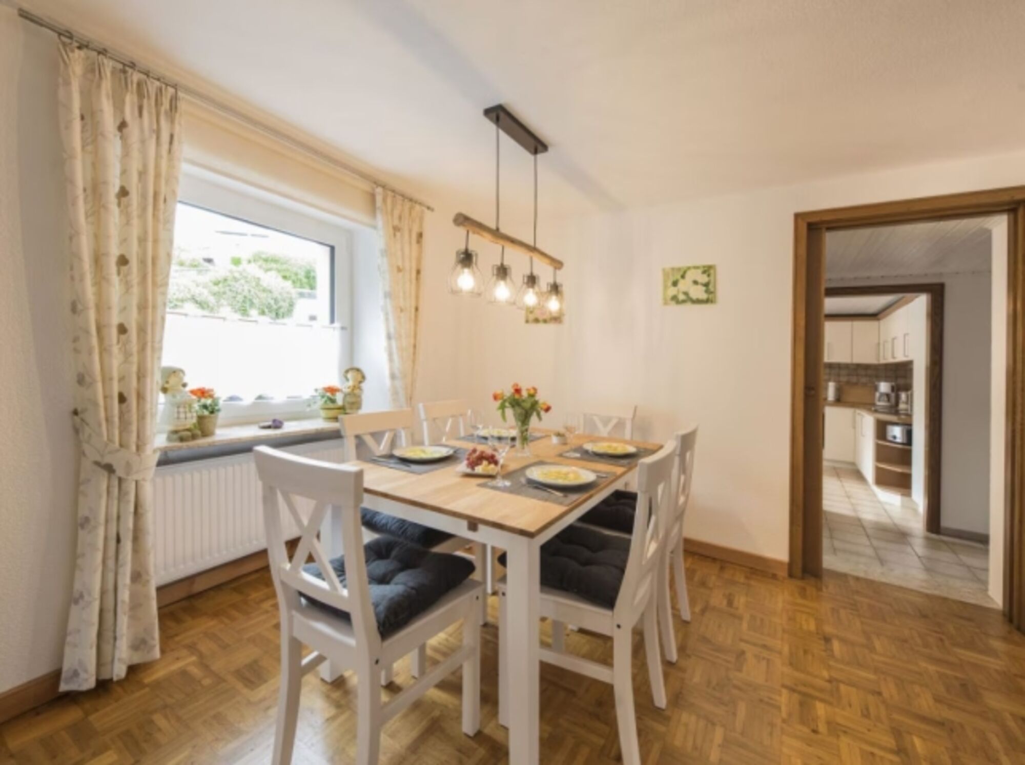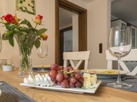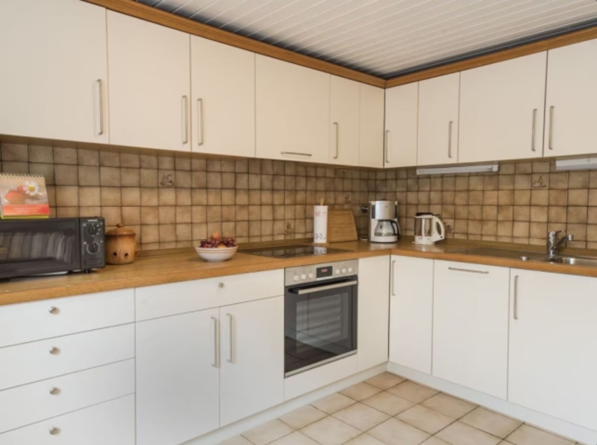 4-Platten Herd, Cerankochfeld, Induktionsherd, Dunstabzugshaube, Kühlschrank mit Gefrierfach, Gefrierschrank, Eierkocher, Mixer, Korkenzieher / Flaschenöffner, Gewürze (Salz, Pfeffer, Zucker), Geschirrhandtücher, Mülltüten, Essplatz in der Küche