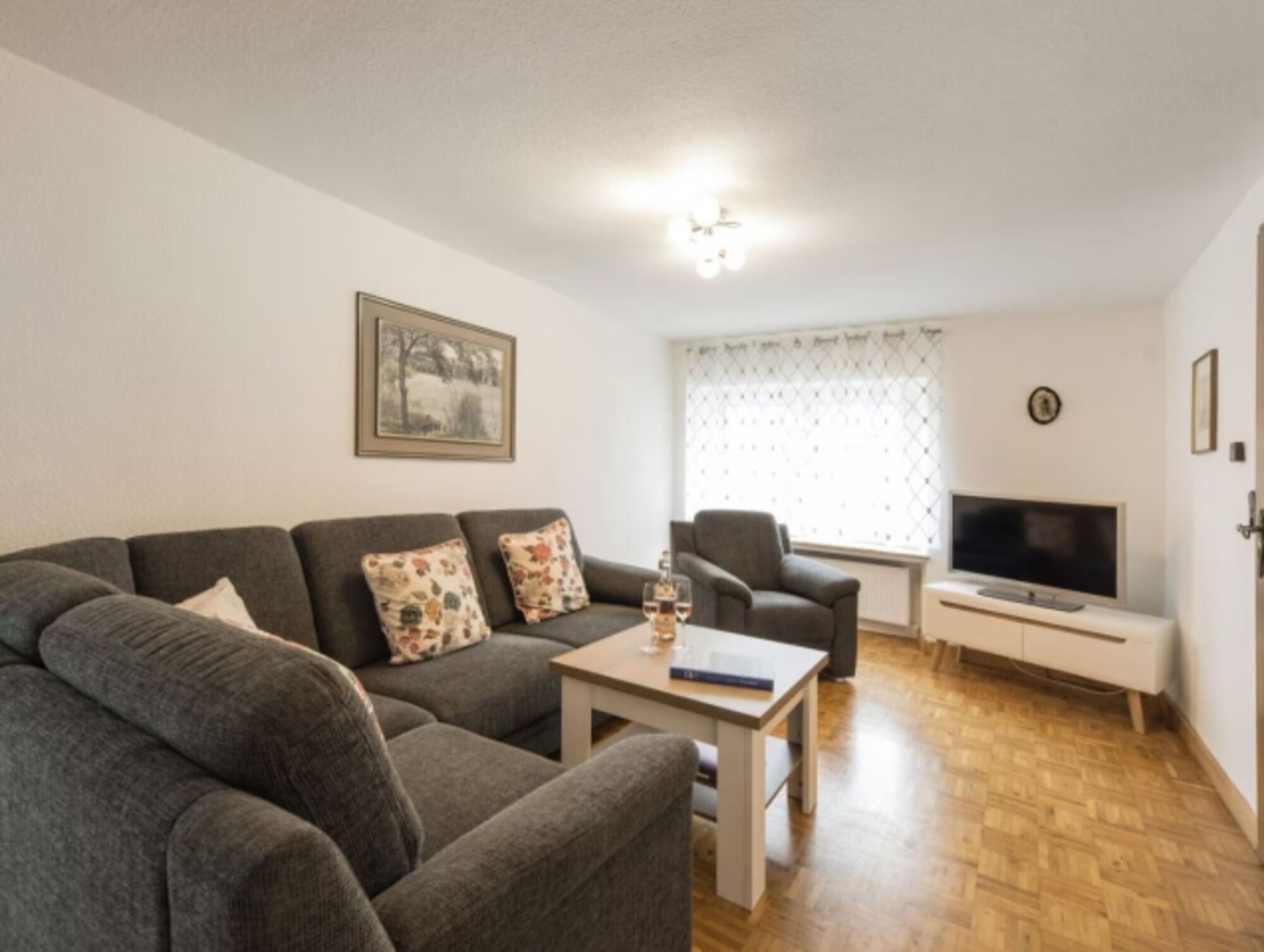 TV, TV-Sat, SMART-TV, DVD bzw. Blu-Ray-Filme, CD-Player, CD´s, Bücher, Eckcouch, 3er-Sofa, Sessel