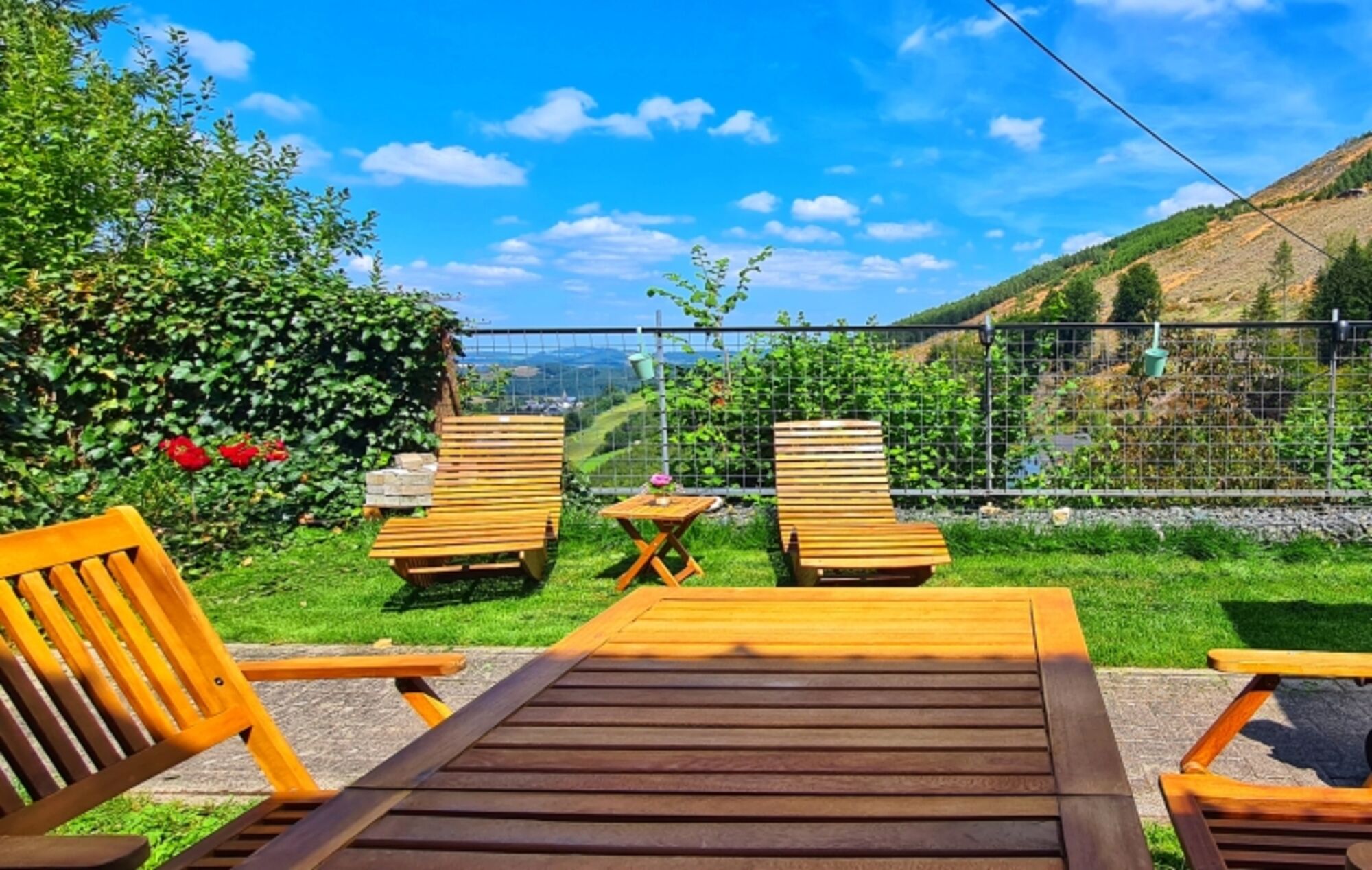 (Am Dörnberg 10a, 59909) auf 650 Höhenmeter mit grandioser Aussicht. Natur & Ruhe pur, kein Verkehr, Wanderwege ab Haustür. Eingezäuntes Grundstück zur Alleinnutzung – ideal für Hunde. 86 qm Bungalow (neben Haupthaus) mit Kamin, Wintergarten, Bad u.V.m.