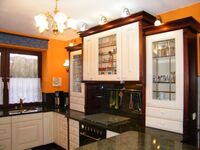 4-Platten Herd, Induktionsherd, Dunstabzugshaube, Kühlschrank mit Gefrierfach, Gefrierschrank, Kaffeevollautomat, Eierkocher, Küchenmaschine, Korkenzieher / Flaschenöffner, Geschirrhandtücher, Mülltüten, Essplatz in der Küche