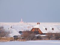 Vom Deich aus hat man einen einmaligen Panoramablick über den weitläufigen Strand, die offene Nordsee und auf den bekannten Westerhever Leuchtturm.