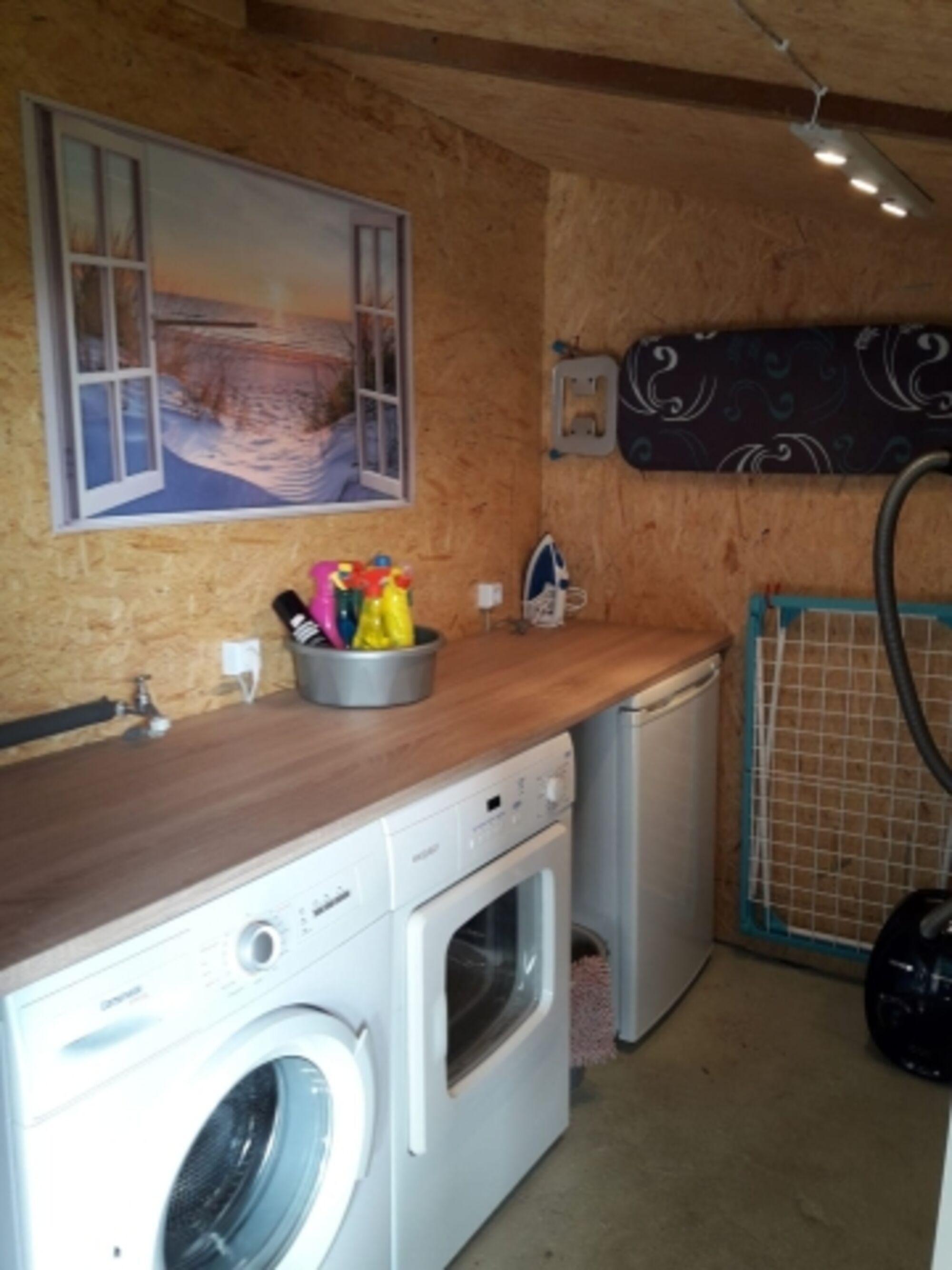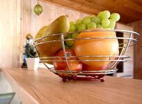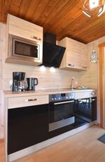 Cerankochfeld, Dunstabzugshaube, Kühlschrank mit Gefrierfach, Gefrierschrank, Korkenzieher / Flaschenöffner, Geschirrhandtücher, Mülltüten, Essplatz in der Küche
