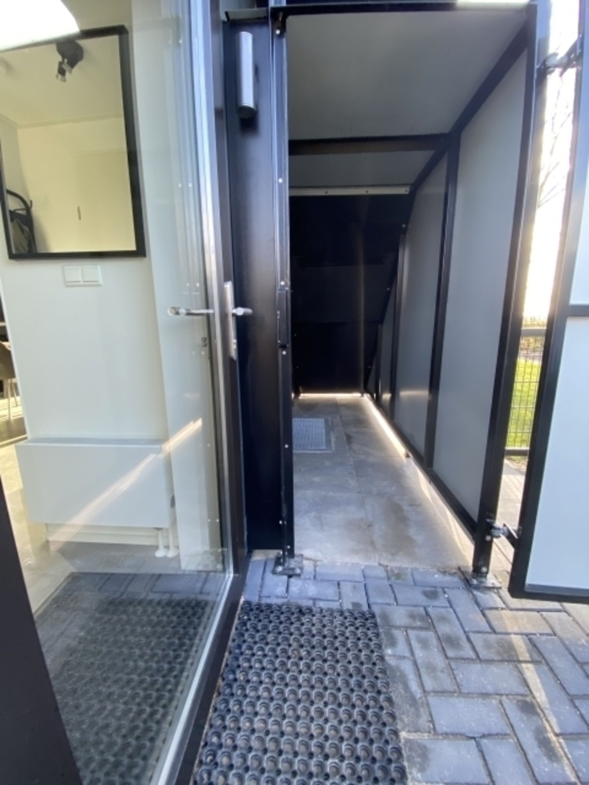 Fliegengitter, Regendusche, Spiegel, Waschbecken