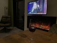 Das gemütliche lichtdurchflutete Wohnzimmer bietet unter anderem einen Panorama-Kamin, eine BOSE-Soundanlage und ein SmartTV (streamingfähig). Genießt den beeindruckend freien Blick über das Naturschutzgebiet von dem bequemen Sofa oder von der Lese-Ecke aus. Die Klimaanlage sorgt zu jeder Jahreszeit für angenehme Temperaturen (für Zweibeiner und Vierbeiner).