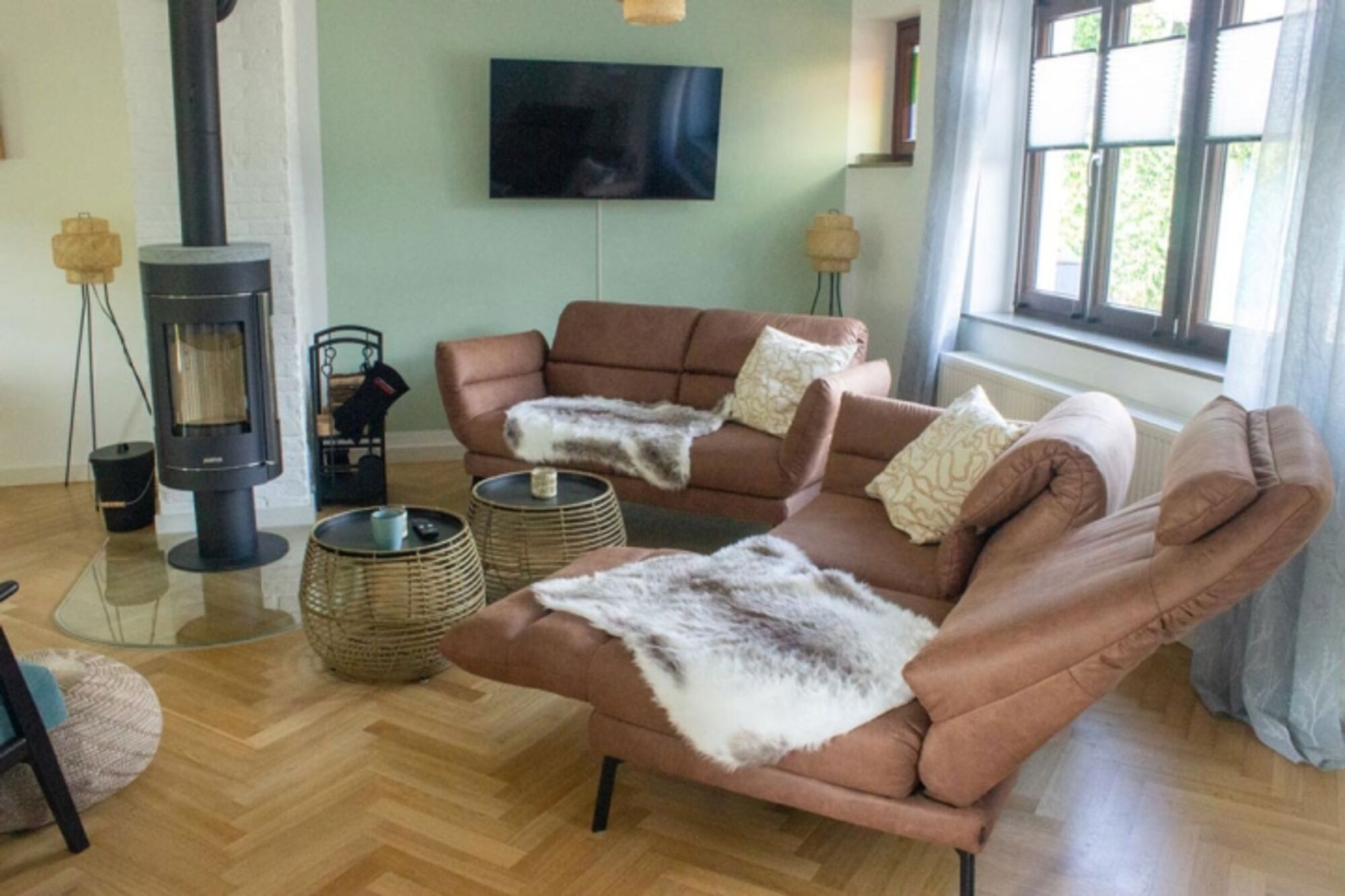 SMART-TV, HDTV Flachbildschirm, Kaminofen, 2er-Sofa, Sessel