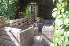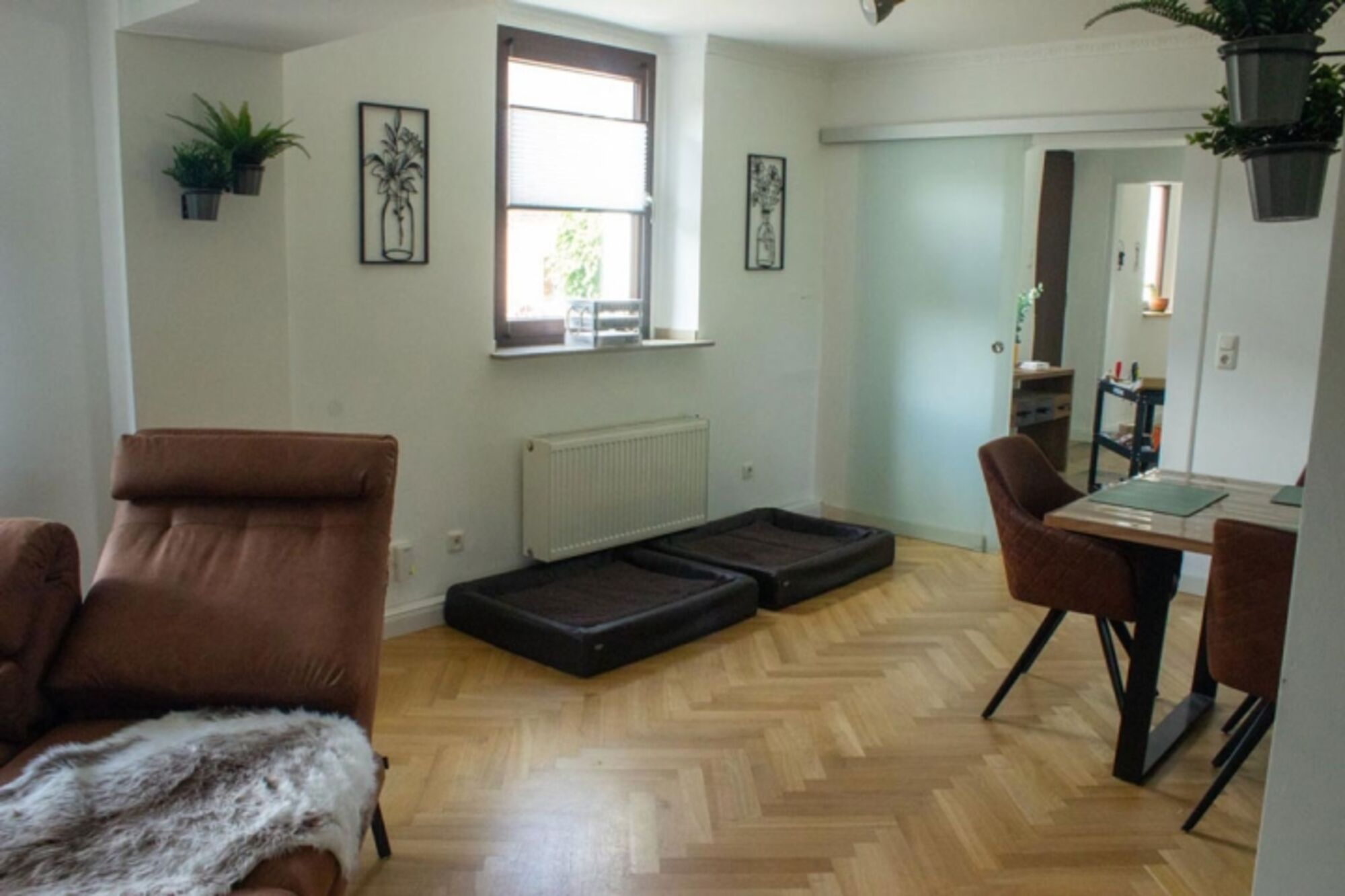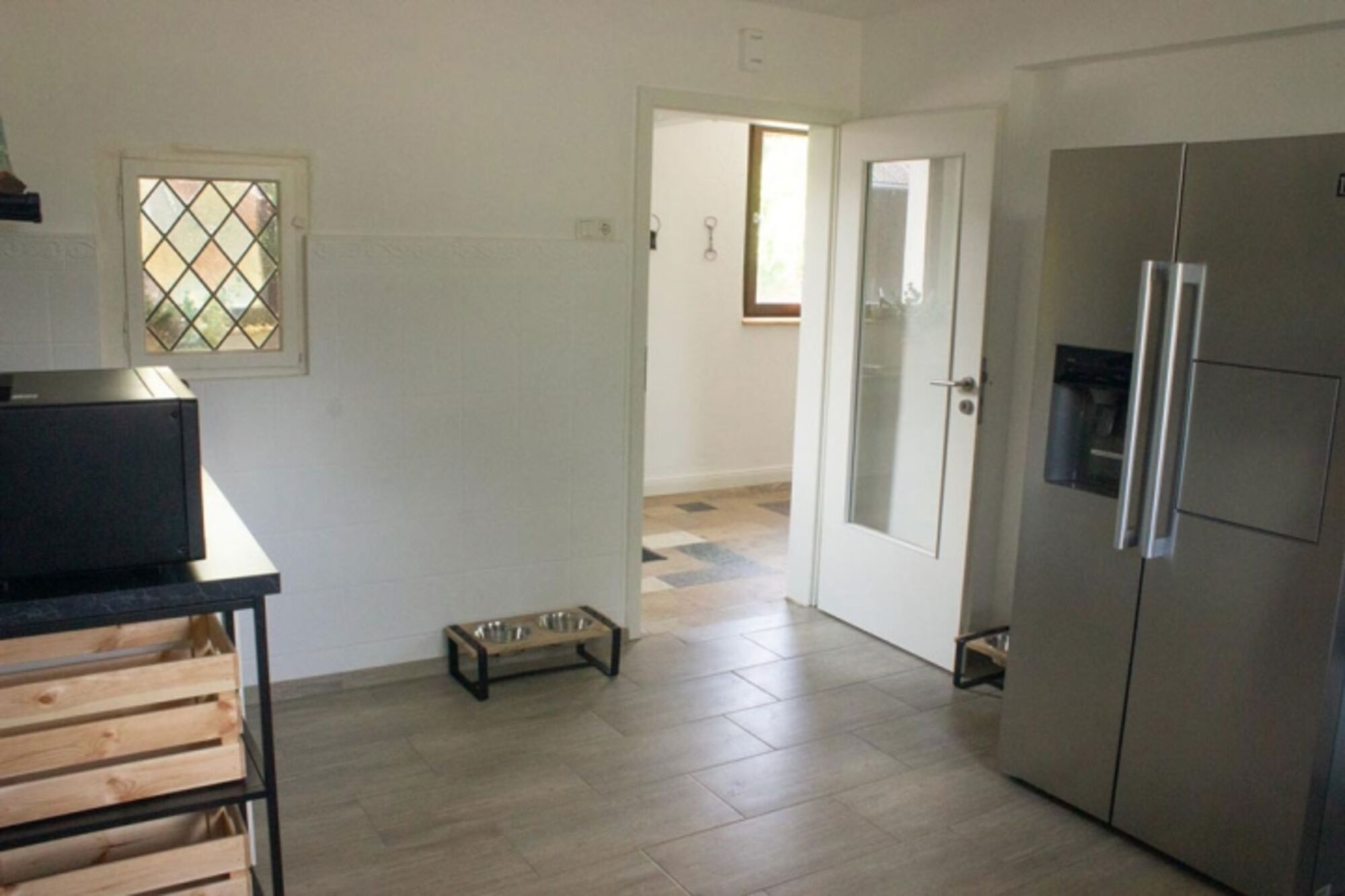 Der Außenbereich lässt sich durch Türen vom restlichen Garten abtrennen. Ein Sichtkontakt mit unseren Hunden lässt sich aber nicht vermeiden. Wenn ihr Hund verträglich ist, darf er gerne die gesamte Hof- und Gartenfläche mit unseren Hunden teilen.