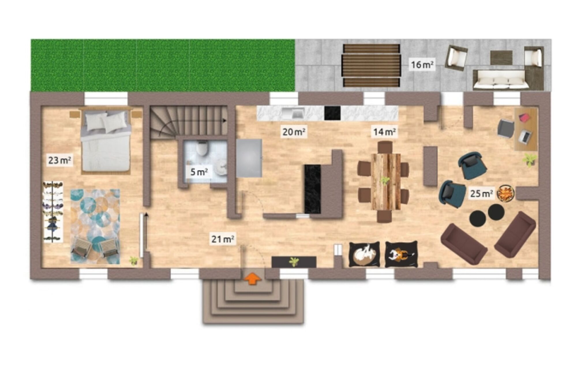 Wir haben bei der Einrichtung bewusst auf Materialien tierischen Ursprungs (Echtleder, Daunen etc.) verzichtet.