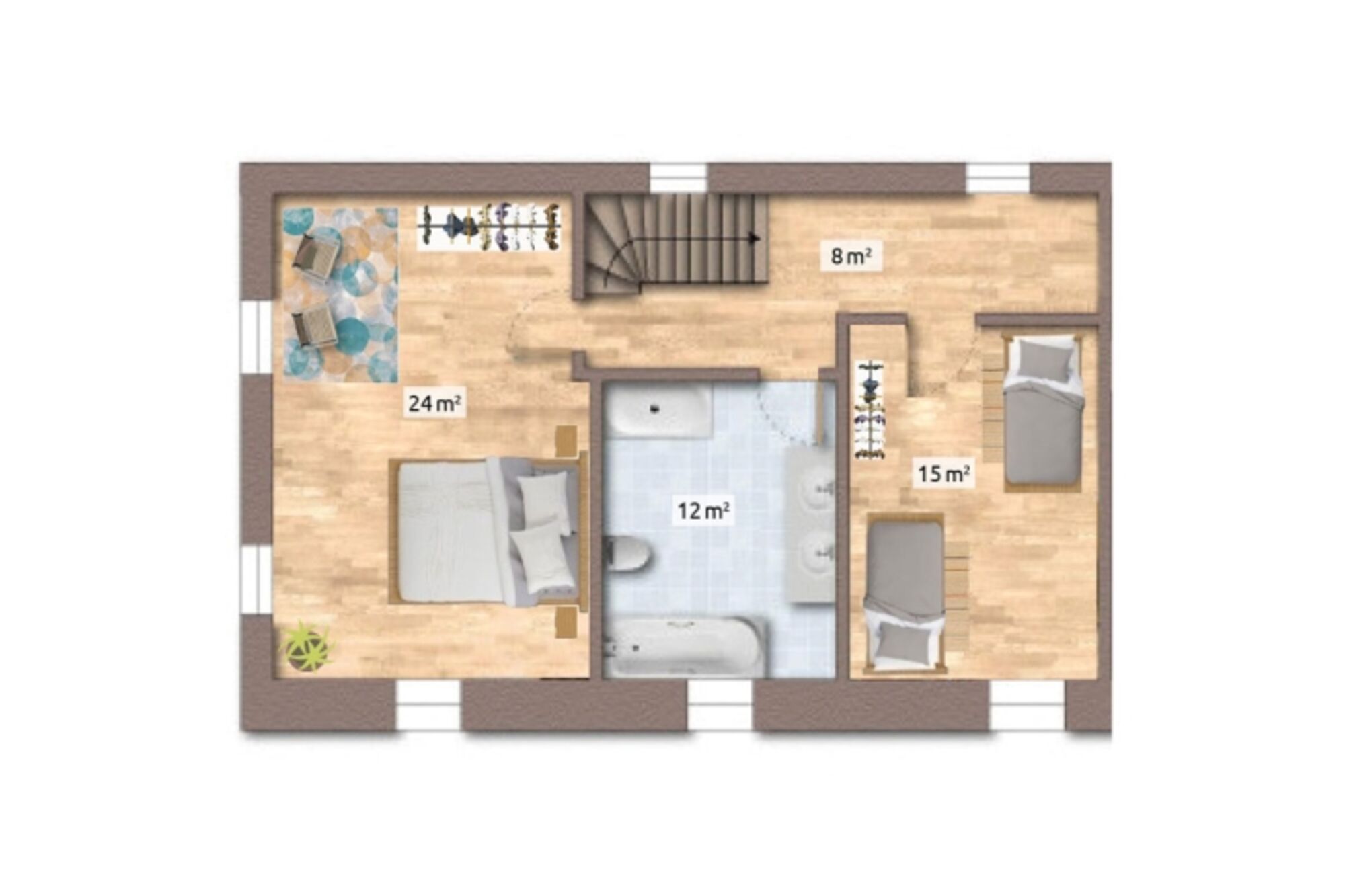 Auf 2 Etagen mit 163qm befinden sich 3 Schlafzimmer, eine große, voll ausgestattete Küche, ein Essbereich, ein gemütliches Wohnzimmer mit Kamin, ein großes Badezimmer mit Badewanne und Dusche sowie ein Gäste WC. Eine eigene, überdachte Terrasse mit Loungemöbeln, ein separater Essbereich für leckere BBQs vom Gasgrill sowie eine kleine Rasenfläche sind vorhanden.