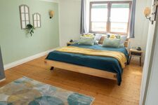 Verdunkelungsvorhänge, Sitzecke, Steckdosen (inkl. USB-C) an jedem Schlafplatz Doppelbett 1,80 x 2,00m, Wecker, Spiegel, Leselampe am Bett