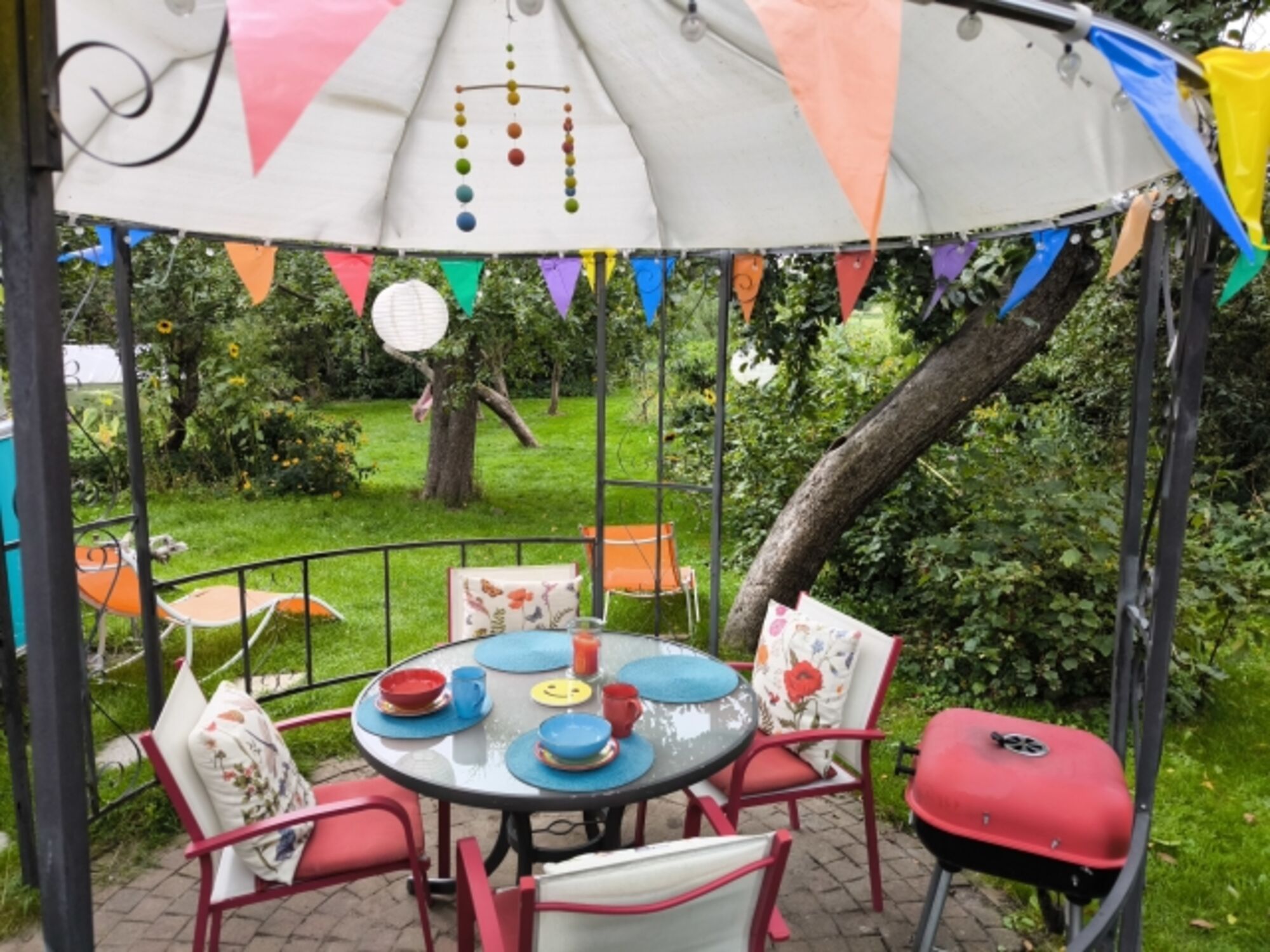 Sie haben Zugang zu einem 2.Duschbad im Haus und unter einem Zirkuszelt Pavillon einen separaten Garten Sitzplatz für bis 4 Personen. Kinderstühle für drinnen und draußen sind vorhanden!