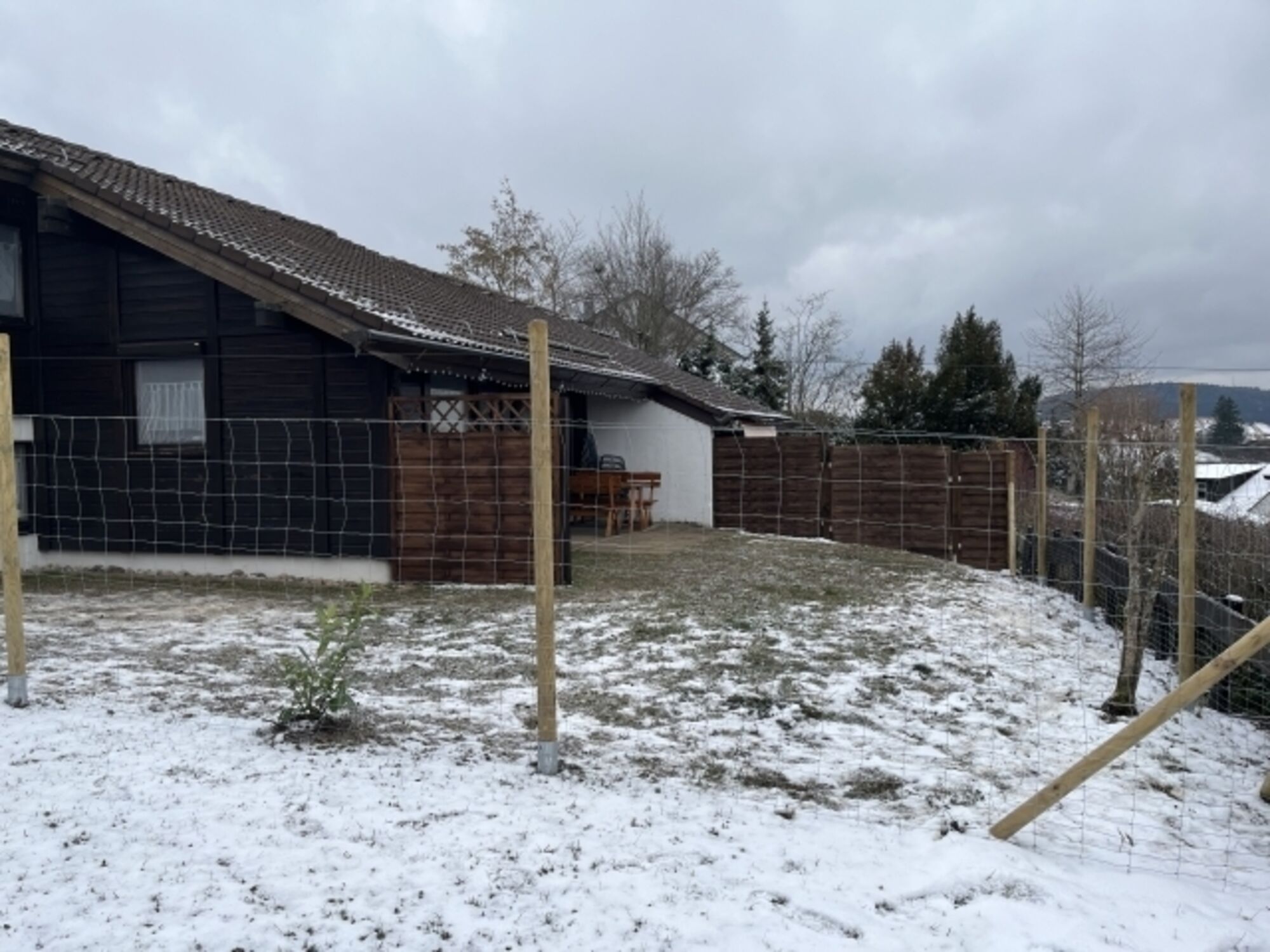 Ein besonderes Highlight für Hundebesitzer ist der ca. 1,50 m hoch eingezäunte Garten, der direkt an die großzügige Terrasse anschließt. Hier kann sich Ihr Hund frei bewegen, während Sie entspannte Stunden im Freien genießen. Die ruhige Lage, umgeben von Natur und Gärten, sowie der weite Panoramablick ins Tal bis zum Feldberg und den Berner Alpen schaffen beste Voraussetzungen für einen erholsamen Urlaub mit Hund.