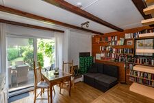 Wohnbereich mit Küche und Zugang zur Holzterrasse