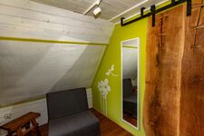 Das Schlafzimmer kann bei einer 2er Belegung als Ankleidezimmer genutzt werden .