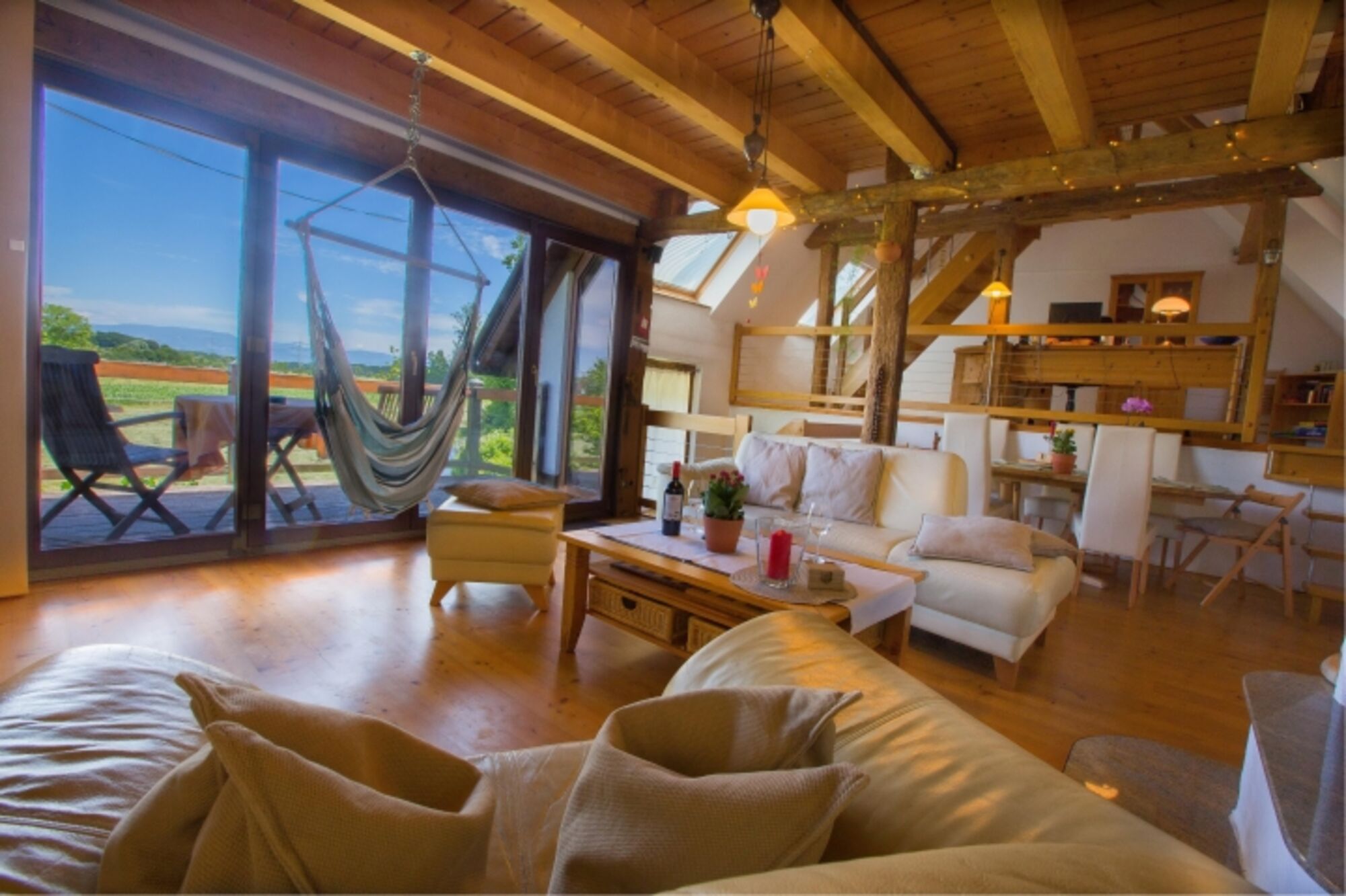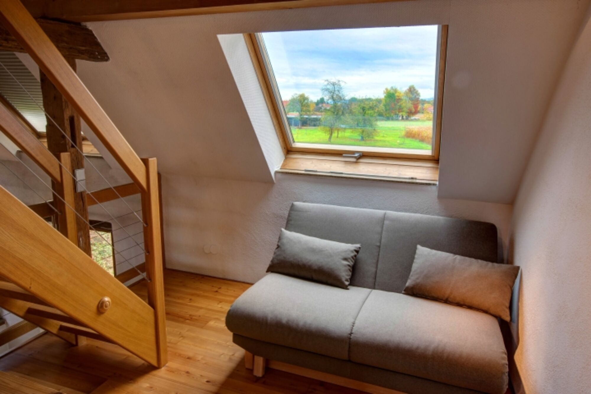 Moderne Ausstattung mit 85-Zoll-Heimkino, Kamin und grandioser Aussicht, ideal für Familien und Hunde bei Straßburg/Nähe Europa-Park. Feld-/Waldwege & Baggersee in der Umgebung.