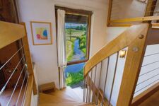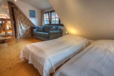 Schlafmöglichkeiten gibt es im Schlafzimmer mit Bachblick, in der offenen Schlafgalerie und im Dachgeschoss.
