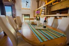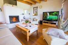 Für Unterhaltung sorgt ein Heimkino mit einem 85-Zoll-Fernseher und Surround-Sound sowie eine PlayStation 3. Die voll ausgestattete Küche lässt keine Wünsche offen: Backofen, Induktionskochfeld, Delonghi-Kaffeevollautomat, Raclette-Grill und mehr.