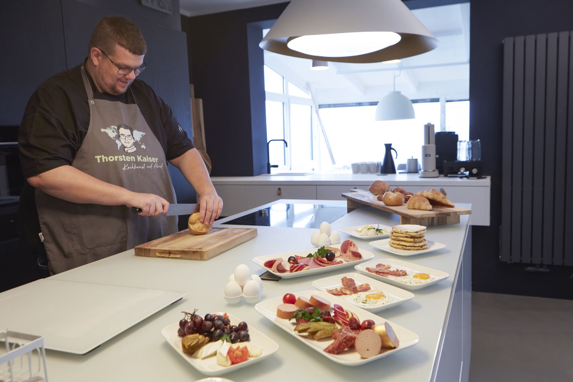 Große, voll ausgestattete Küche (2 Backöfen, 2 Spülmaschinen, mehrere Kühlschränke)