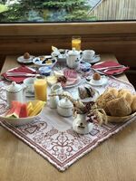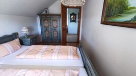 Unser Doppelzimmer 4 bietet einen herrlichen Blick ins Tal und Platz für bis zu 2 Erwachsenen mit einem Doppelbett in einem separaten Schlafzimmer und ein Schlafsofa für 2 Kinder oder Jugendliche. Bitte buchen Sie zu diesem Zimmer Frühstück dazu. Leider verfügt die Unterkunft nicht über eine Küchenzeile im Zimmer. Im Haus befindet sich ein Restaurant, in welchem Sie das Frühstück und ggf. Mittag- und Abendessen einnehmen können. Doppelbett 1,80 x 2,00m
