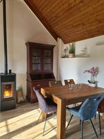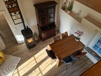 Im Wohnzimmer finden Sie zwei bequeme Sofas (Zweisitzer) und einen kuscheligen Sessel, ideal zum Entspannen nach einem ereignisreichen Tag - vielleicht während Sie es sich im Winter vor dem Holzofen gemütlich gemacht haben.