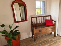 für entspannten Schlaf, zwei Einbaukleiderschränke, ein Stuhl, eine Garderobe und ein Spiegel sind ebenfalls vorhanden, um Ihren Aufenthalt noch angenehmer zu gestalten. Dazu bieten wir ein Extrazimmer, mit einem schmaleren Bett 140cm, einem Einbauschrank, einem Spiegel, einer Garderobe und einem Stuhl.