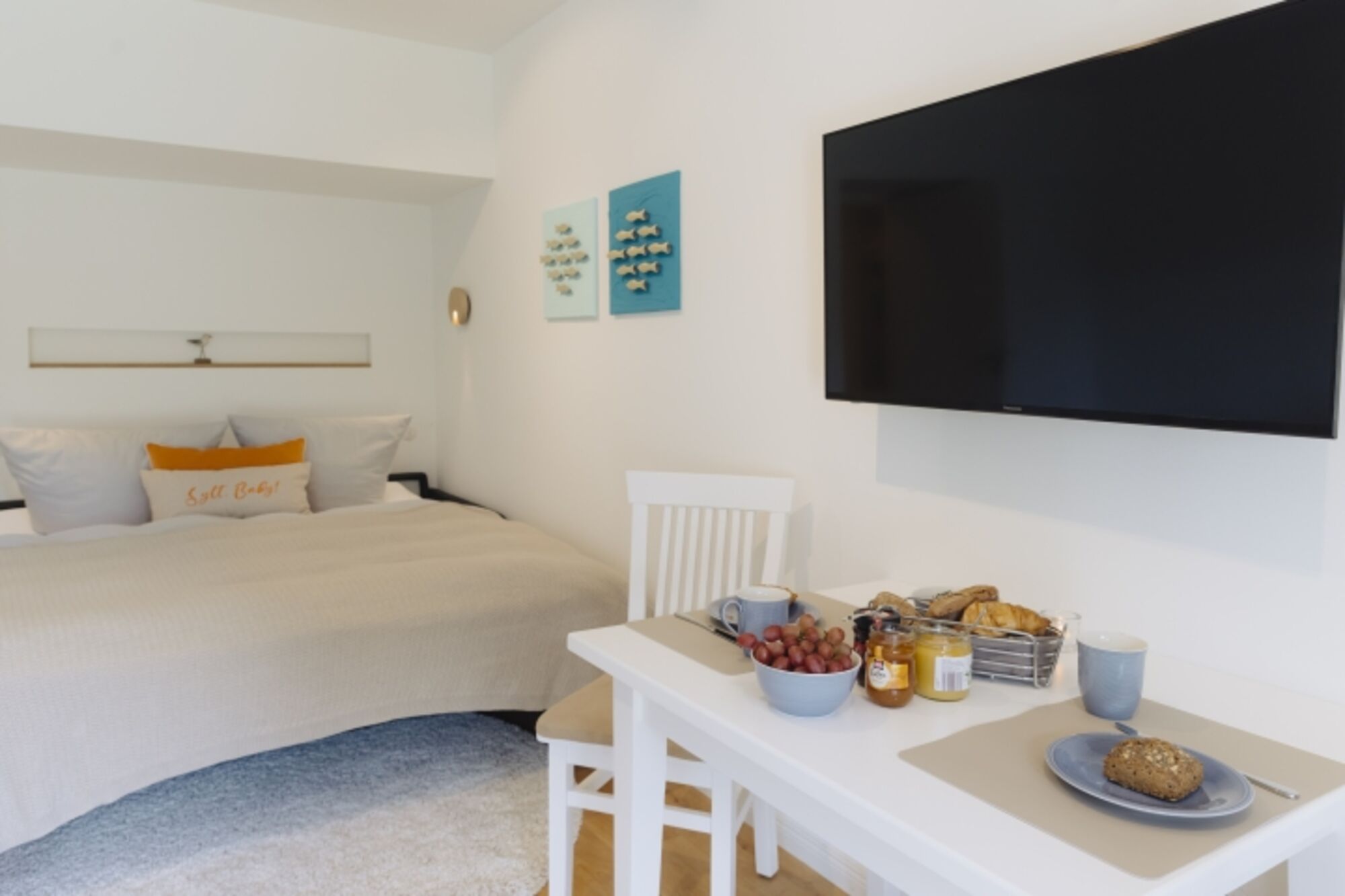 Wenn die kühle Meeresluft Sie umhüllt, sorgt die behagliche Atmosphäre in der Wohnung dafür, dass Sie sich sofort wohlfühlen.
