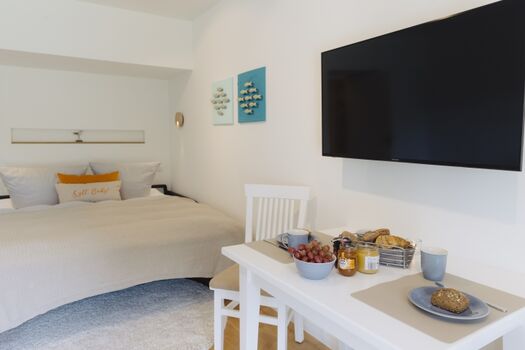 Die Wohnung ist perfekt für zwei Erwachsene, aber auch für eine kleine Familie mit einem Kind bietet sie genug Raum.