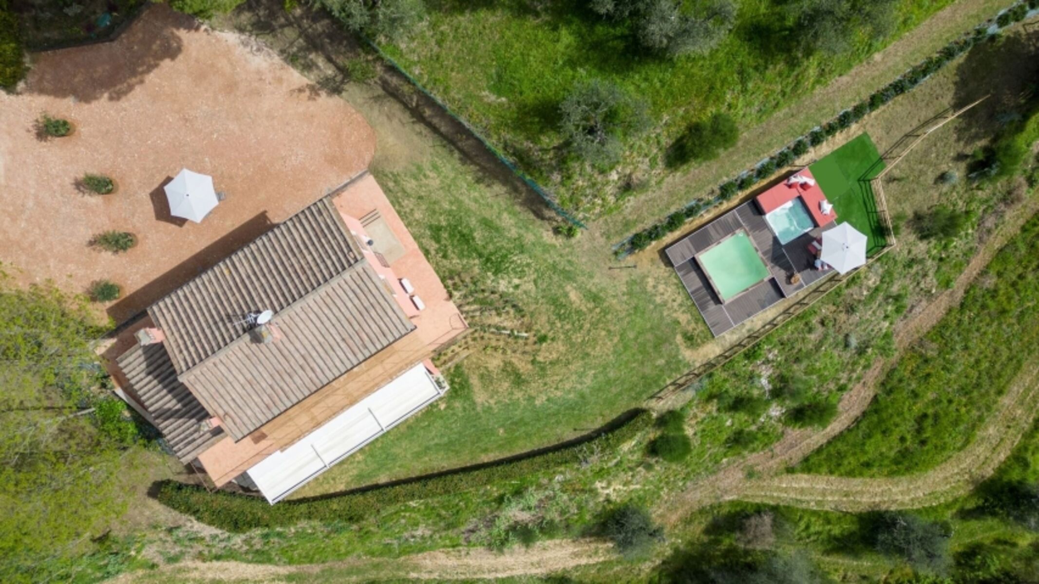Freistehendes Haus, von ca. 180qm, das sich über drei Etagen erstreckt. Panoramaterrasse, überdachte Veranda mit großem Grill und Holzofen. Der Ruhebereich liegt in Richtung Waldblick. Wendeltreppe zum Hauptschlafzimmer mit Klimaanlage und eigenem Bad.
