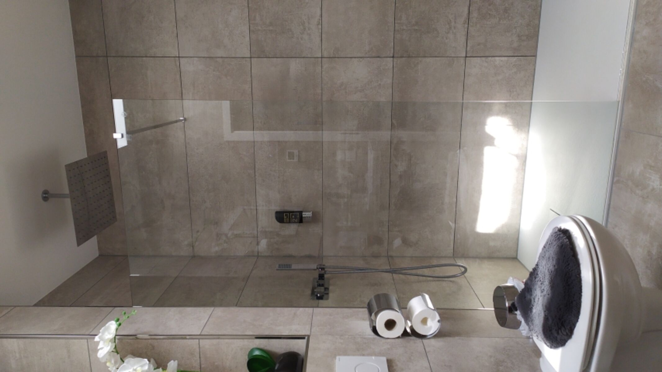 •ein Bad mit WC, Regendusche und Fön, Toilettenpapier, Duschseife, Handseife