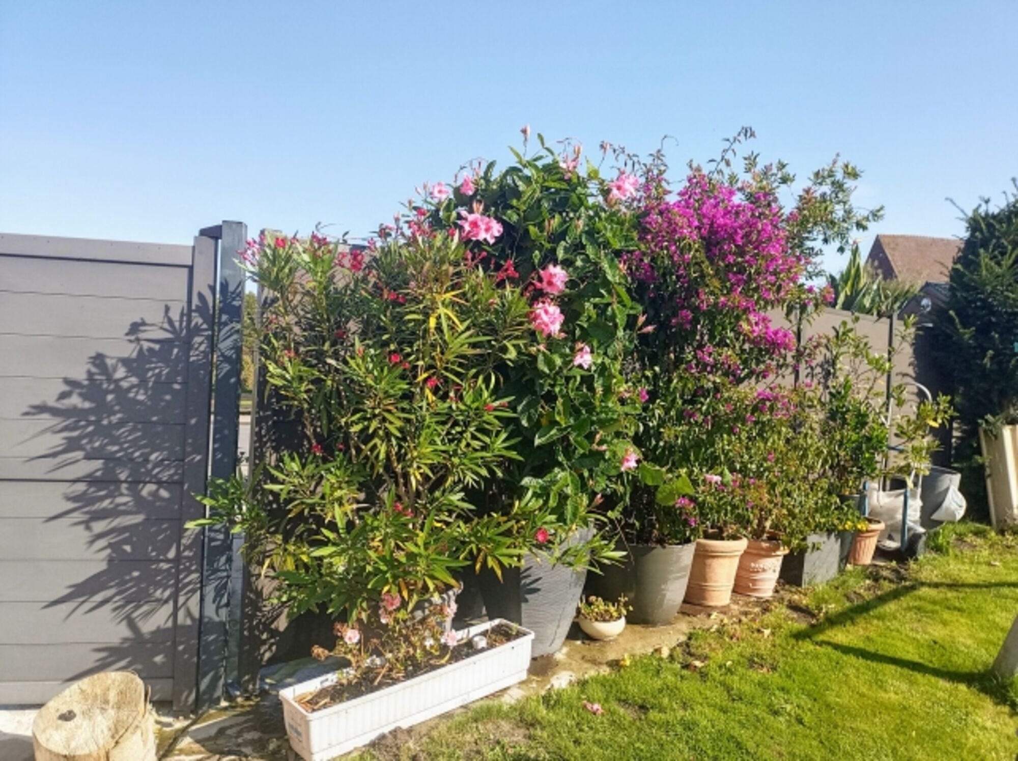 Sie können durch ein Tor über eine Gartenzufahrt direkt an die kleine Wiese vor Ihrer überdachten Terrasse und Eingang fahren und dann auch gleich dort parken !