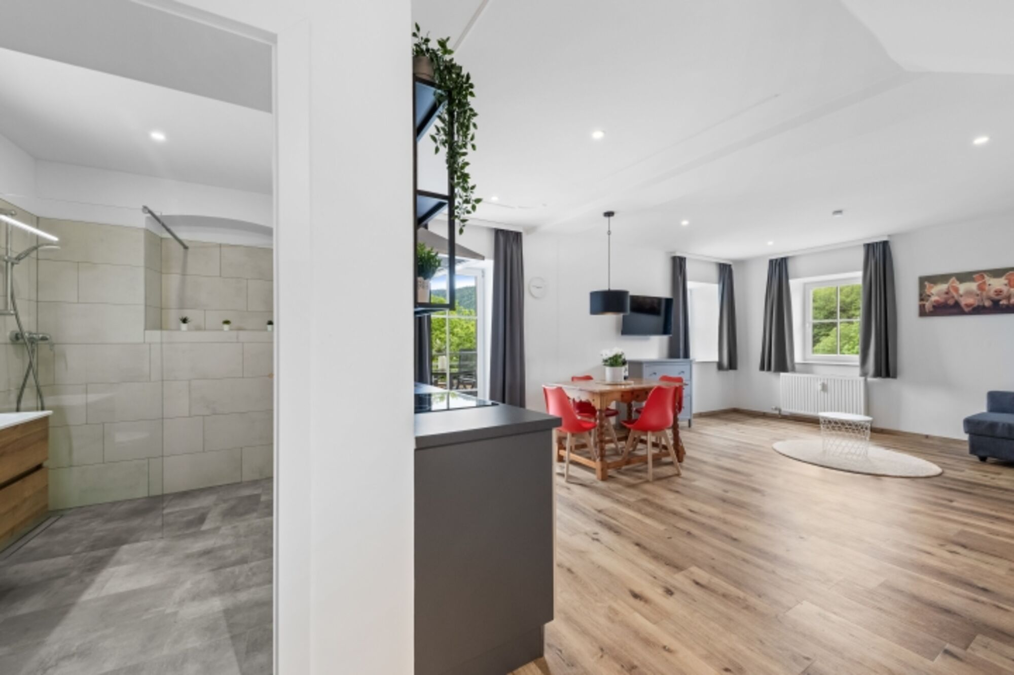 Willkommen im Apartment Schwein, wo Komfort und modernes Design aufeinandertreffen! Unsere familienfreundliche Unterkunft bietet alles, was du für einen unvergesslichen Aufenthalt benötigen. Ideal für Familien mit Kindern und einem Hund, erlebe hier einen erholsamen Urlaub inmitten der Natur.