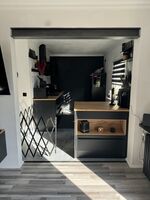 Zum King size Bett aus Bambus individuell , befindet sich noch ein Schlafsessel im Zimmer welcher sehr bequem ist . Der Kleiderschrank ist ein individueller Aufbau, der mit kleinen Fächern und einer Kleiderstange besetzt ist. Die Tür ist eine moderne Schiebetür Doppelbett 1,80 x 2,00m, Einzelbett, Kommode, Leselampe am Bett