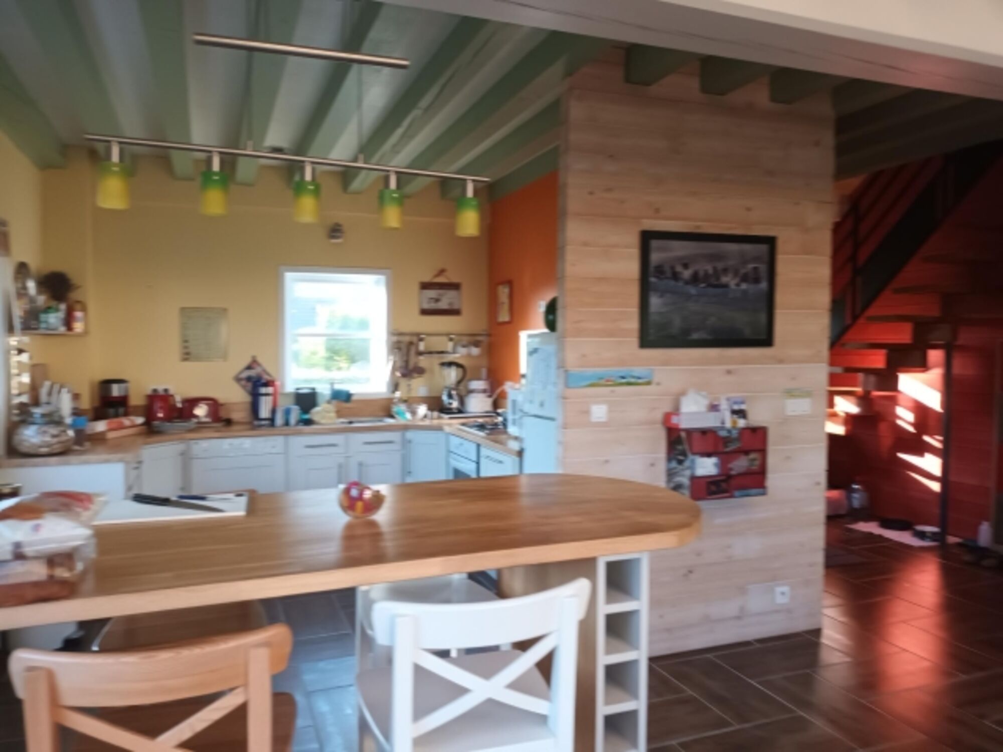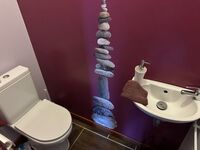 Wohnfläche 120 qm.gut ausgestattete, moderne Einbauküche offen zum Ess-/Wohnbereich im Erdgeschoss. In der schicken Einbauküche finden Sie: 4-Platten Gasherd, Backofen, Spülmaschine, Kühlschrank, Toaster, Kaffeemaschine, Mikrowelle. Das gemütlich eingerichtete Wohnzimmer hat eine Sitzgruppe, großen Essplatz und große Fensterfront mit Blick in den Garten. Auch im Erdgeschoss ist ein Duschbad und ein separates WC. Es gibt auch einen Waschraum mit Waschmaschine. Schlafzimmer mit Doppelbett.